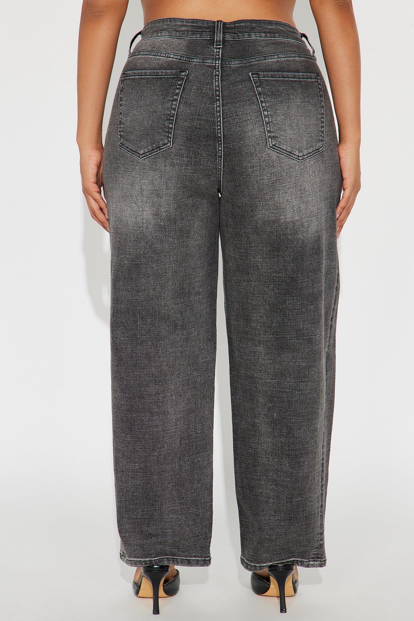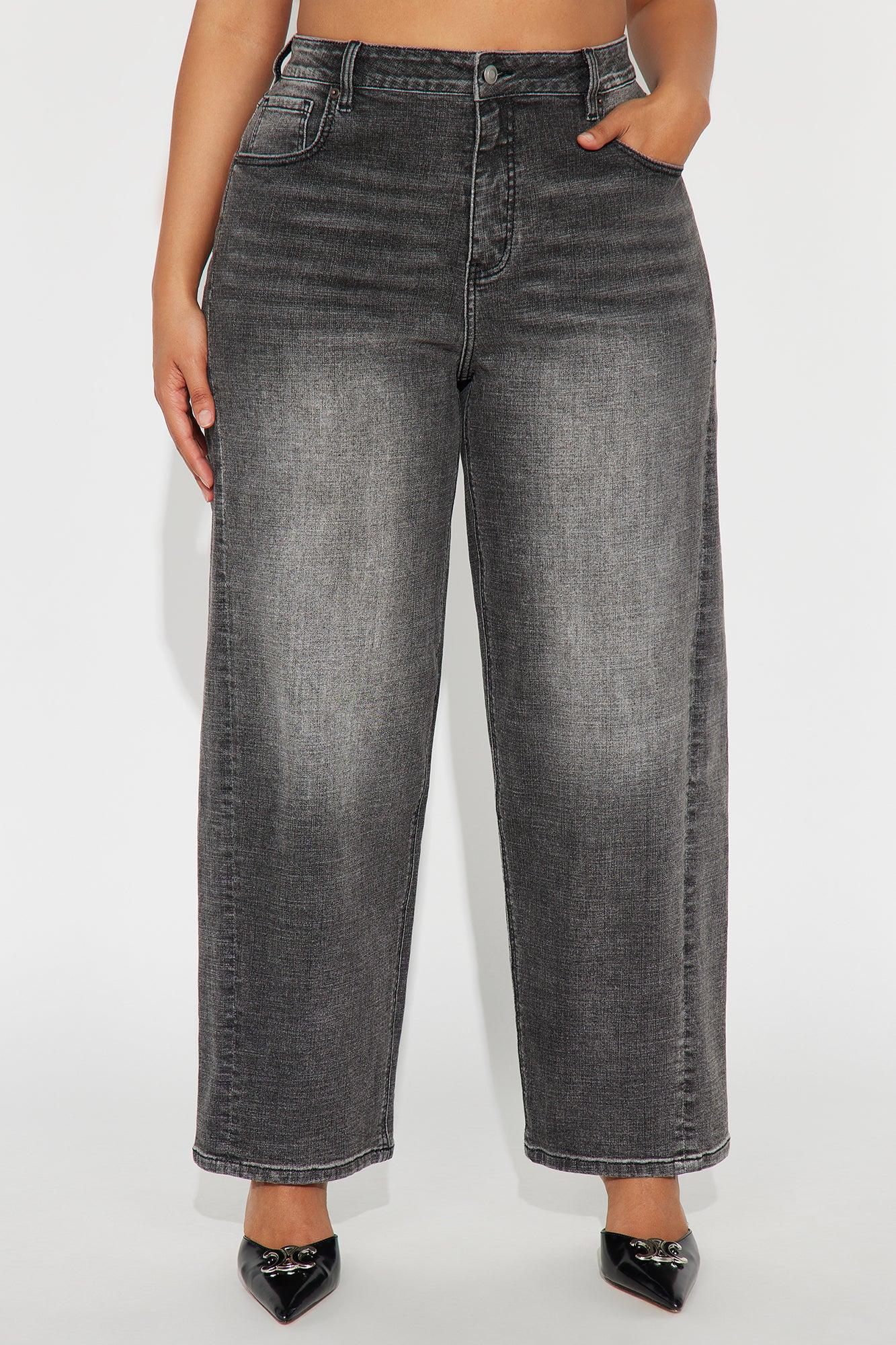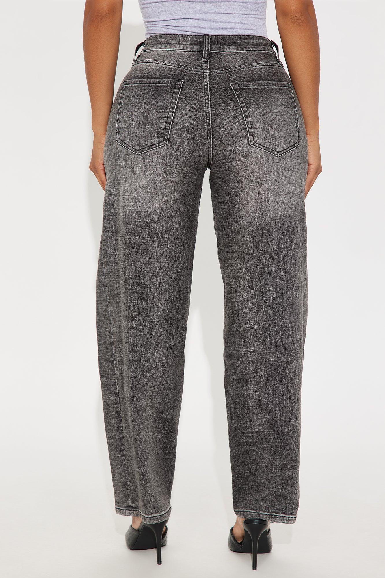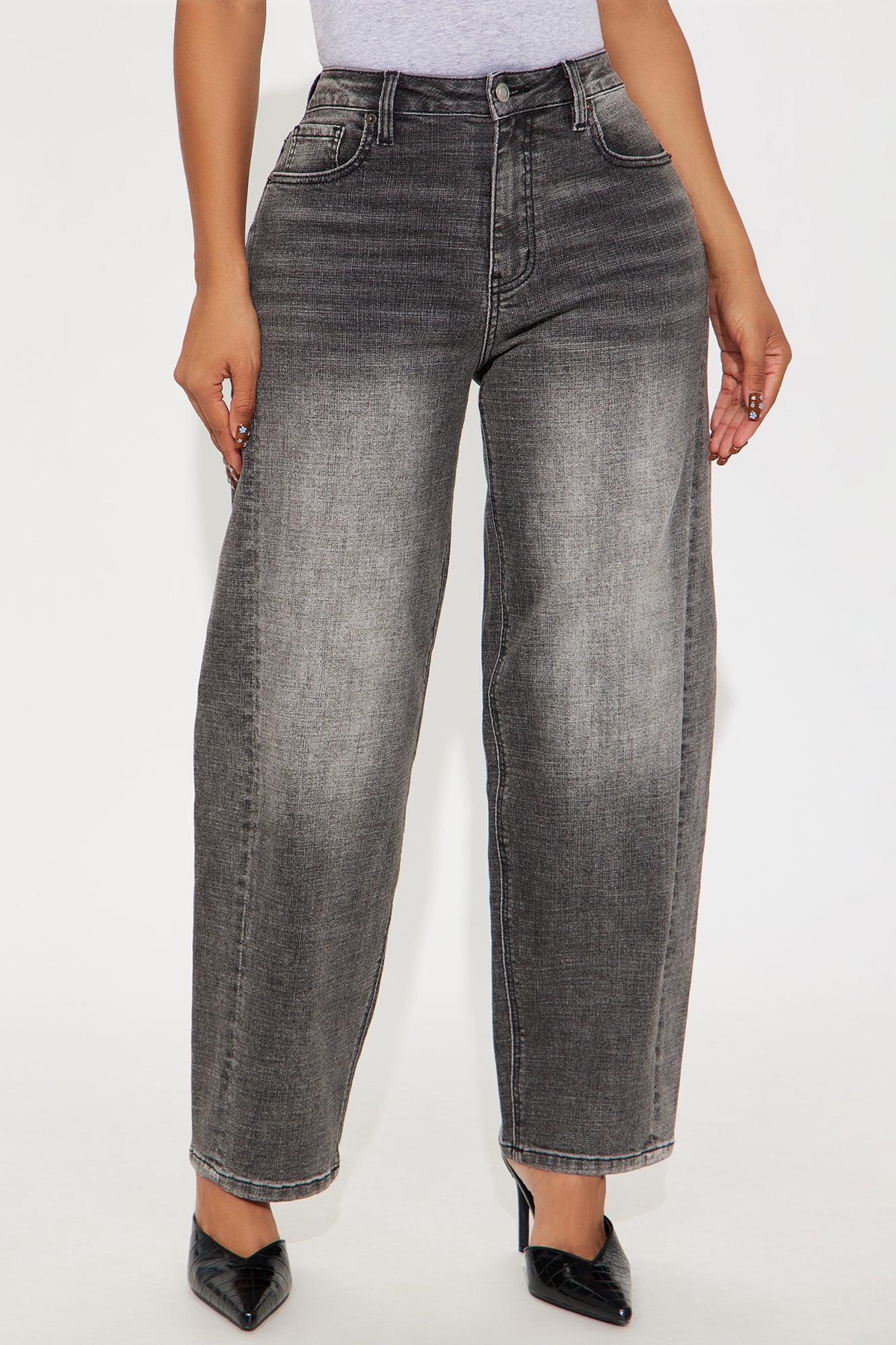 Available In Dark Wash And Grey. Barrel Leg Jean Non Stretch 5 Pocket 11.5" High Rise 30" Inseam Disclaimer: Due To The Specialized Wash Process, Each Garment Is Unique. 68% Cotton 30% Polyester 2% Spandex Imported California Proposition 65WARNING: Cancer and Reproductive Harm - www.P65Warnings.ca.gov.
