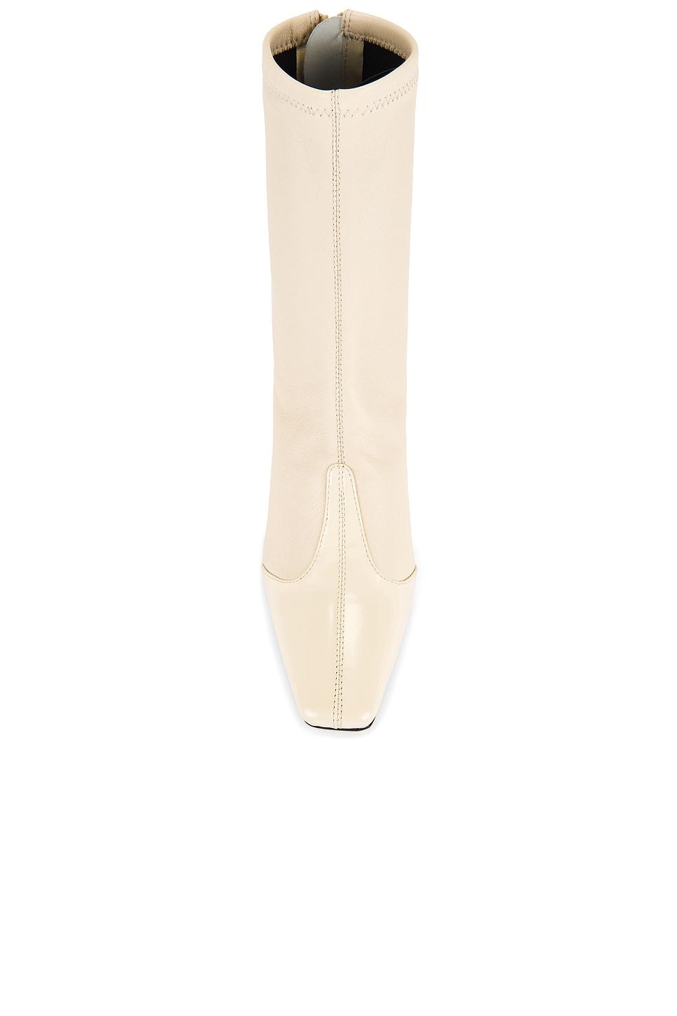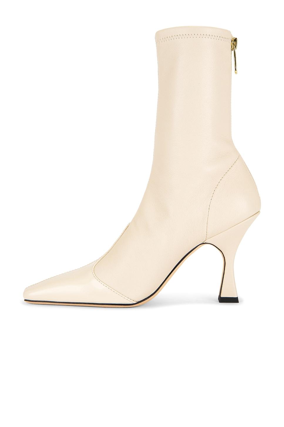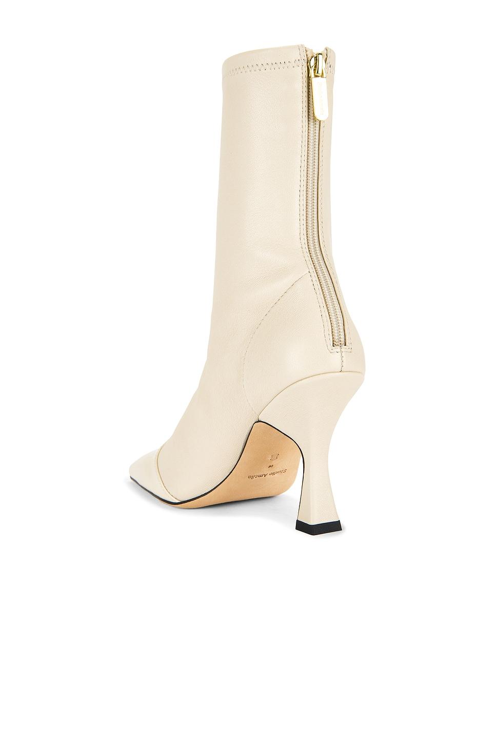 Leather upper and sole. Back zipper closure. Leather footbed with textile lining. Pointed square toe with flare heel. Approx 95mm/ 3.75 inch heelApprox 184mm/ 7.25 inch shaftOpening measures approx 7" in circumference. Made in China. Revolve Style No. SAML-WZ36. Manufacturer Style No. F770CFS.