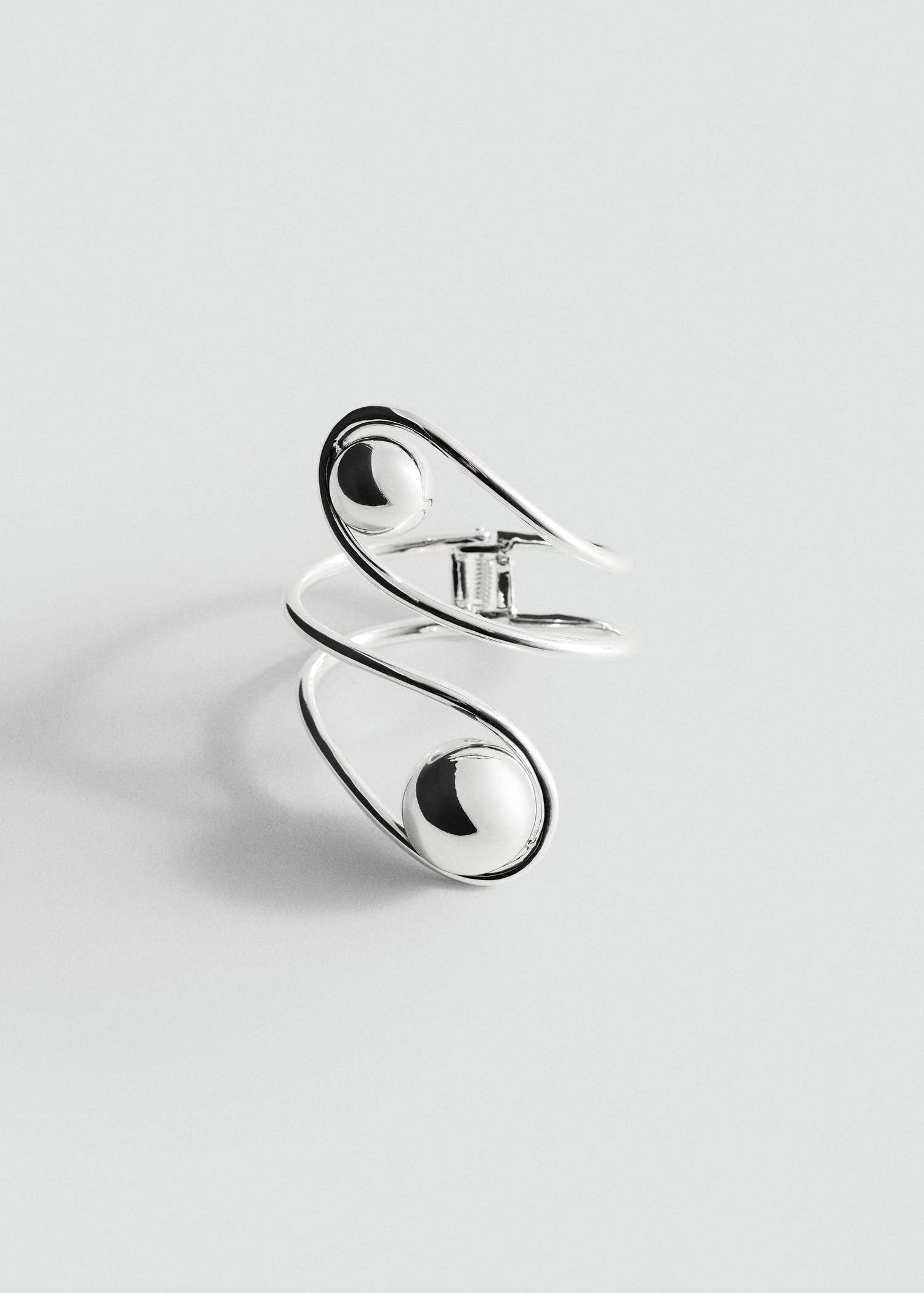 This bracelet stands out for its contemporary design, featuring prominent spheres at each end that add a touch of elegance. Its silver metallic structure and polished finish reflect light, making it the ideal accessory to enhance any modern outfit. Rigid design. Spiral design. Decorative balls appliqués. No closure. Items from the CAPSULE collection can be exchanged or returned within 14 days from the date of shipment. Capsule: a collection of limited-edition garments, made with the best fabrics and the greatest care in patternmaking, to achieve the best finishes. This exclusive collection is designed for the most special events and occasions