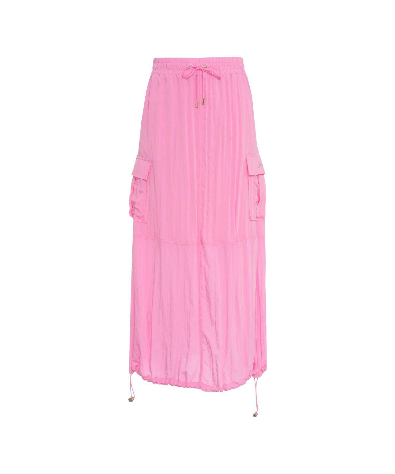 High Rise Plain Drawstring Midi A-Line Cargo Skirt