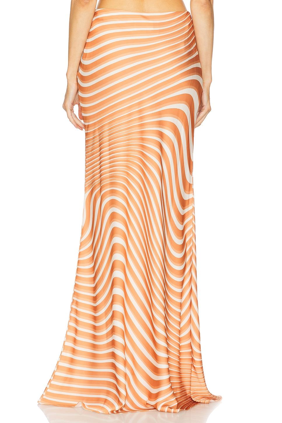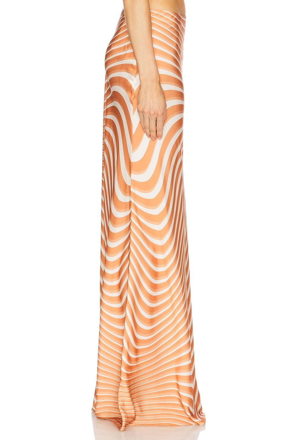 96% polyester, 4% lycra. Made in India. Dry clean only. Unlined. Hidden side zip closure. Midweight satin fabric. Item not sold as a set. Skirt measures approx 41.5" in length. Revolve Style No. ROCS-WQ65. Manufacturer Style No. RS-CZAR-2507.