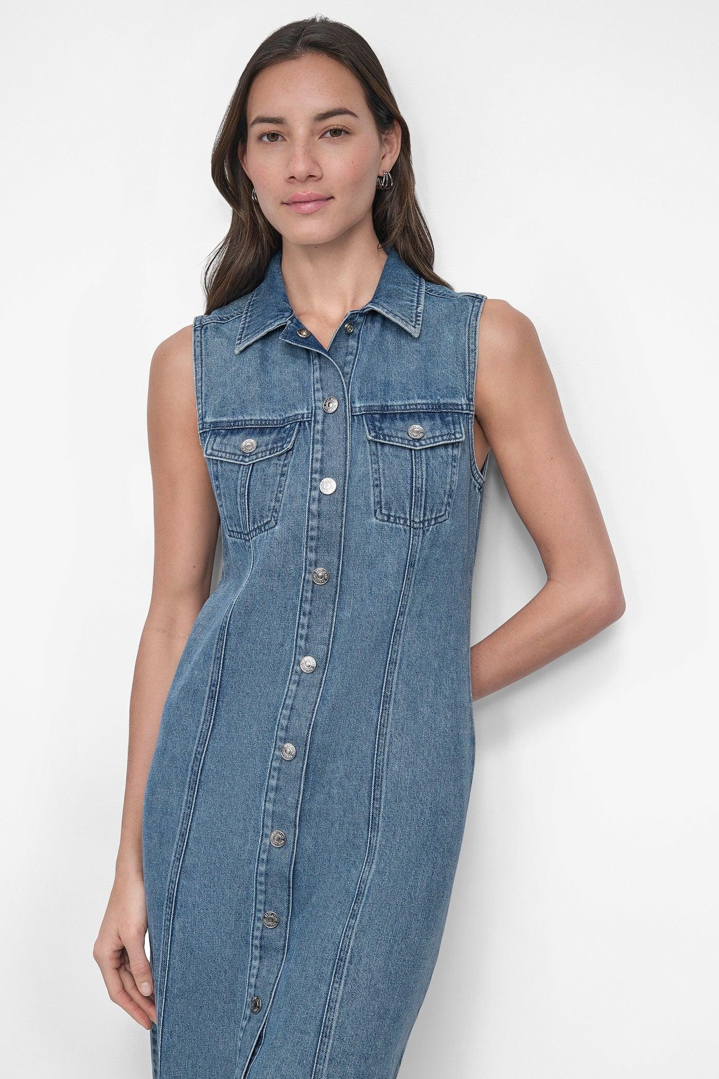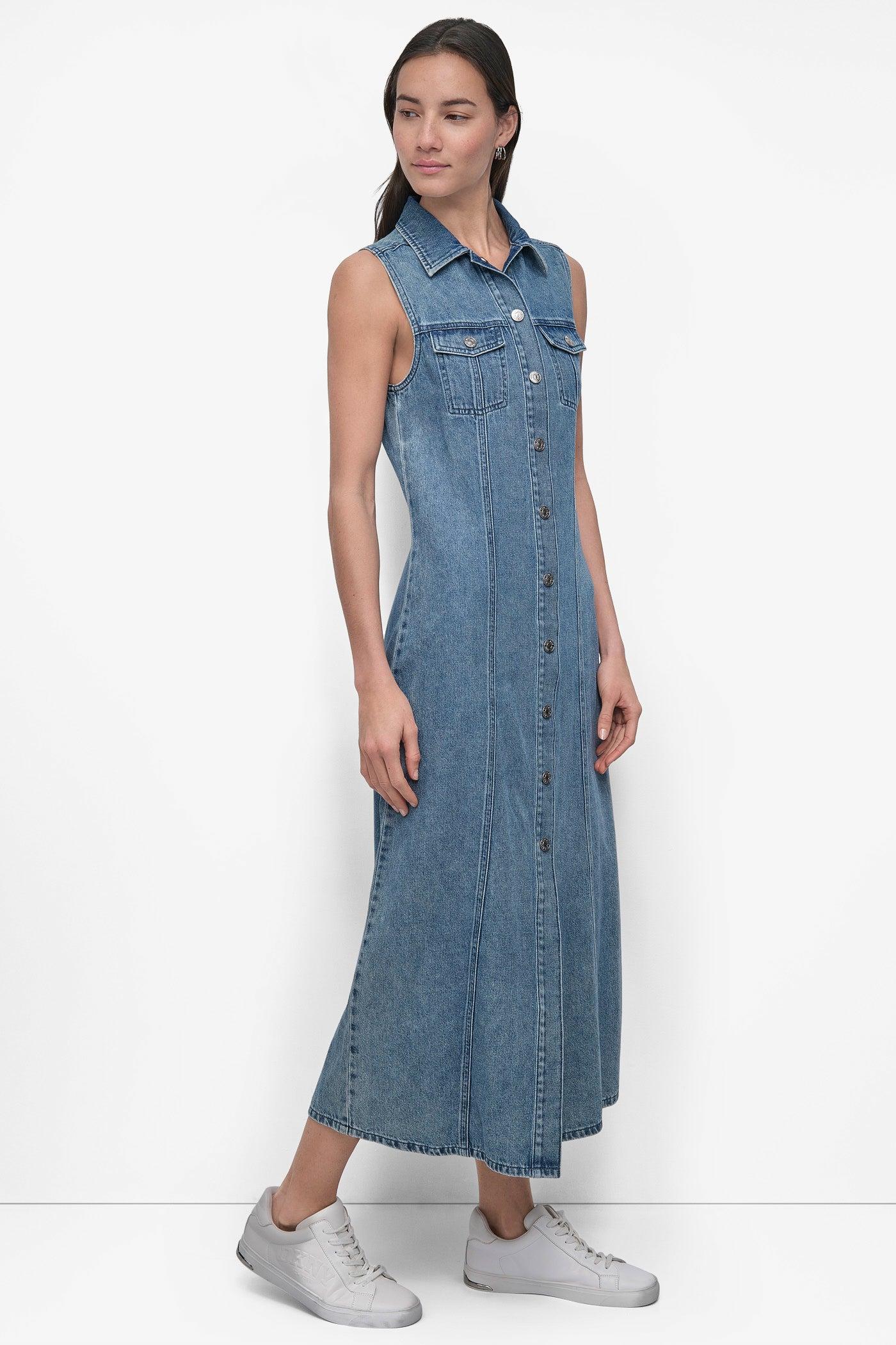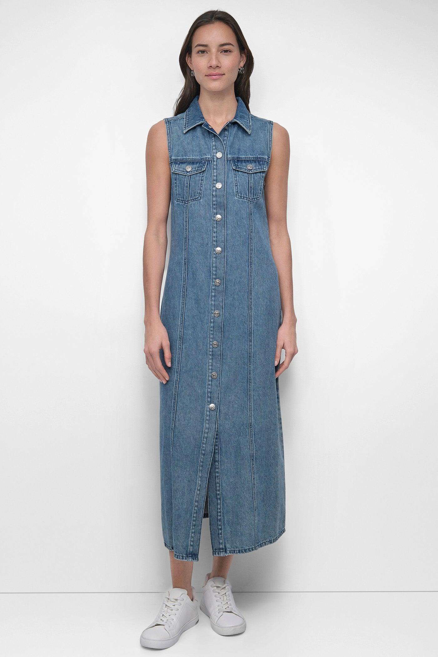 MAXI SLEEVELESS BUTTON FRONT DRESS
