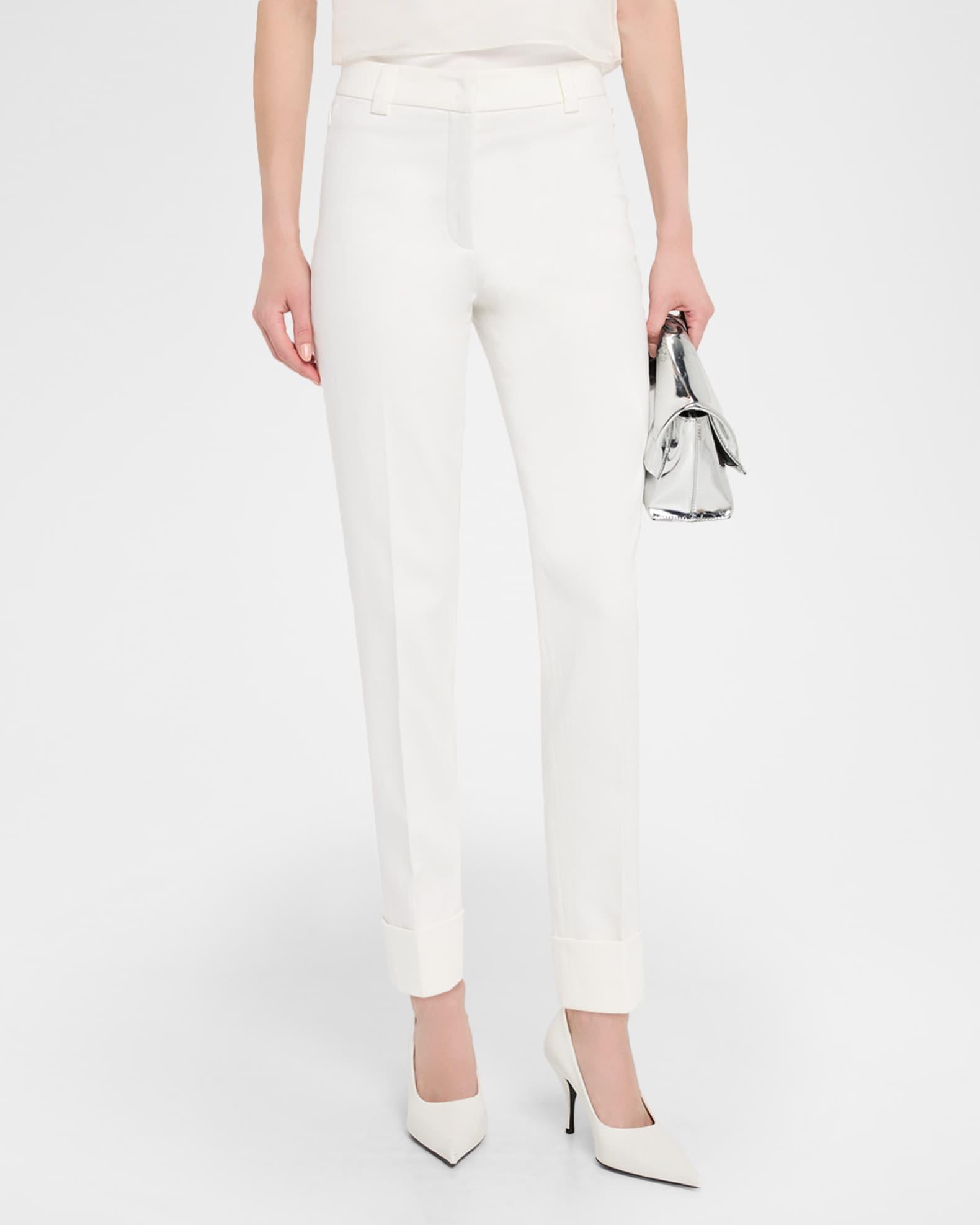 Akris "Maxima" cuffed pants crafted a stretch cotton denim High rise Side zipped and back welt pockets Cropped fit Skinny legs Hidden hook/zip fly; belt loops Cotton/polyurethane Lining: Cupro Dry clean Made in Romania