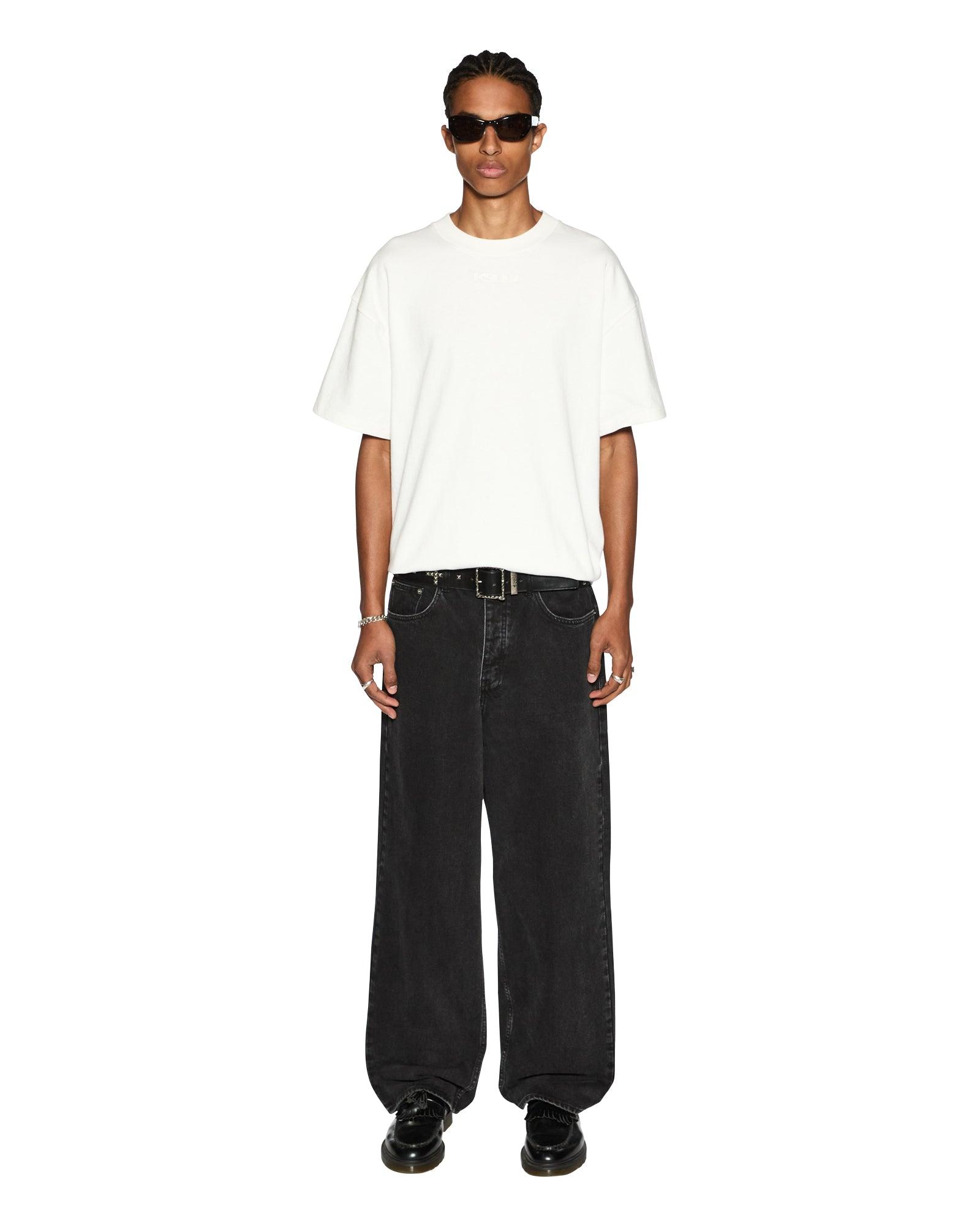 The Maxx Noir jean features exaggerated stacking at the ankles, light seam grinding, ghost patch on the back and classic ksubi branding. Made from a premium rigid denim in black faded wash, this jean is a mid rise, oversized fit with a loose leg opening. Key ring sold separately.Cool machine wash with like colours, wash inside out, do not bleach, remove promptly after wash, do not tumble dry, cool iron on reverse, do not iron directly onto prints or metal hardware, colour may transfer onto other garments and upholstery.