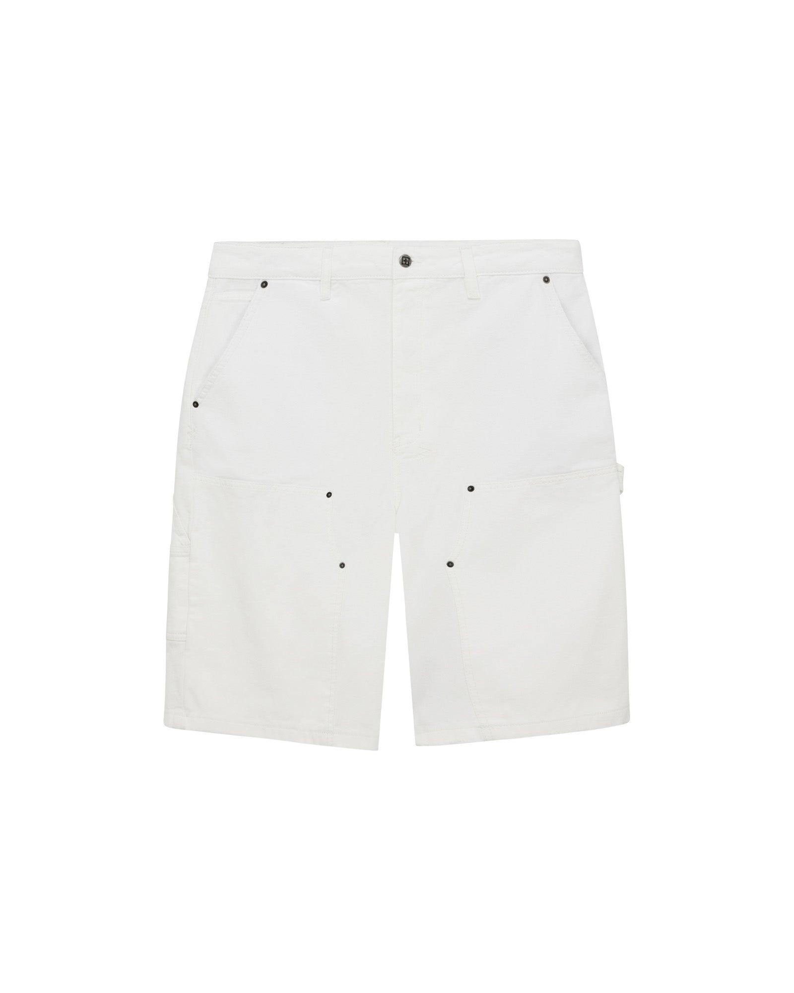 The Maxx Operator Short Arktik is an exaggerated wide-leg jean short with a long rise, featuring carpenter panels, right leg carpenter�s pocket tab, cut-away pockets, and back patch pockets. Made from European rigid white denim with a light garment wash, it is finished with signature T-box and 4x4 embroidery and Ksubi branded hardware.
