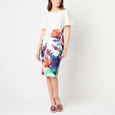 Maya Brooke Womens Short Sleeve Cap Sleeve Floral