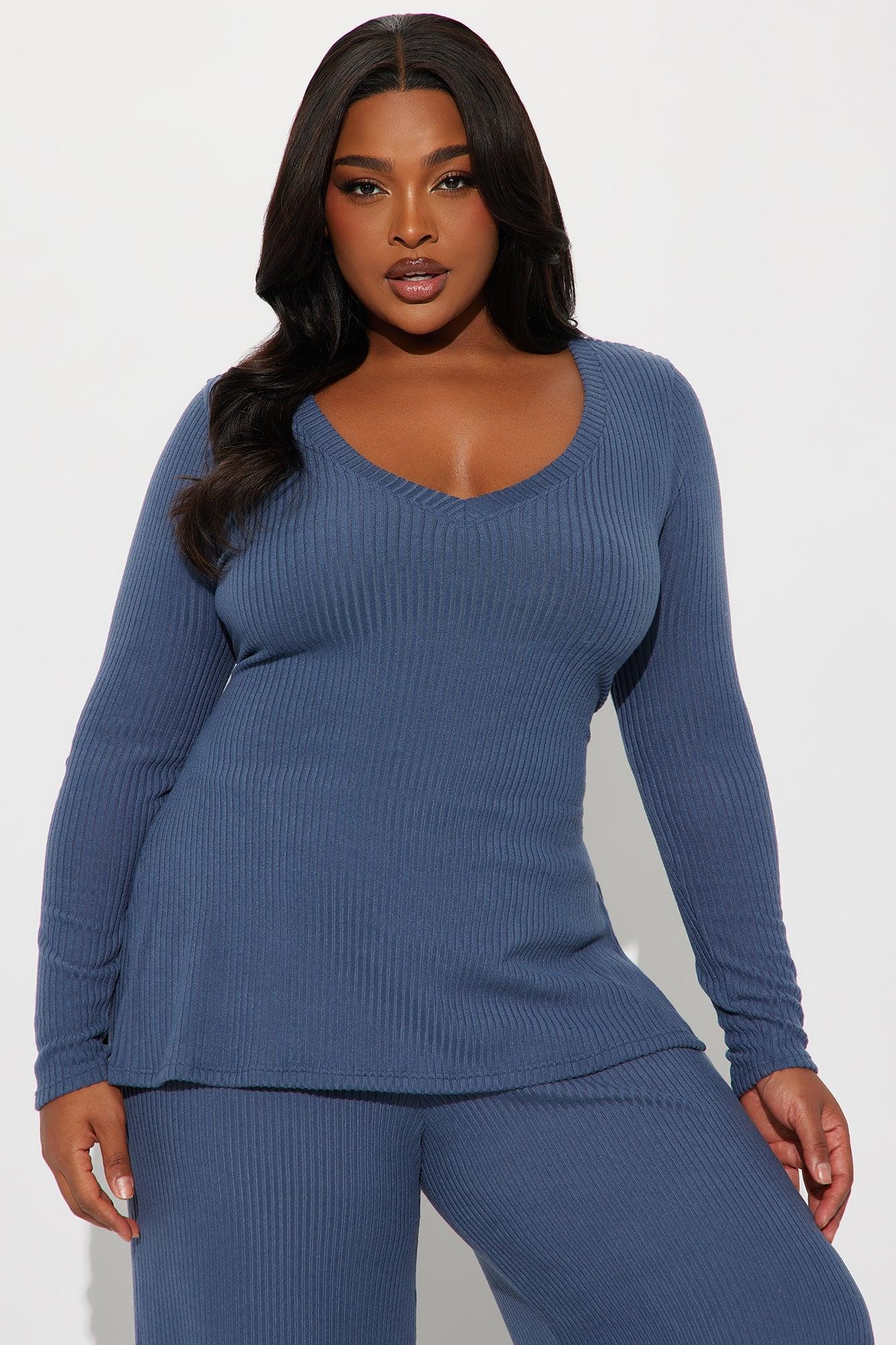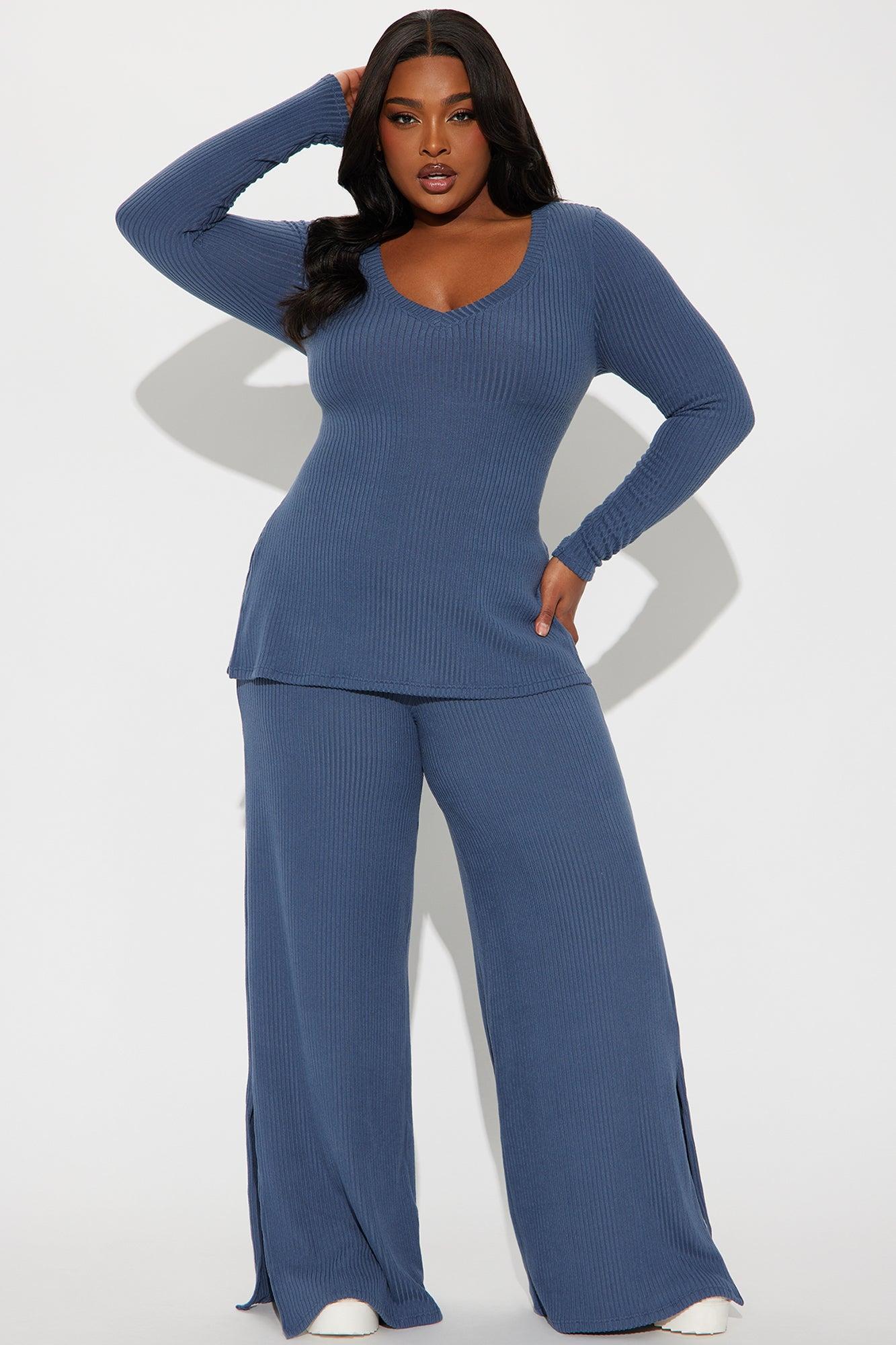 Maya Cozy Ribbed Pant Set - Denim
