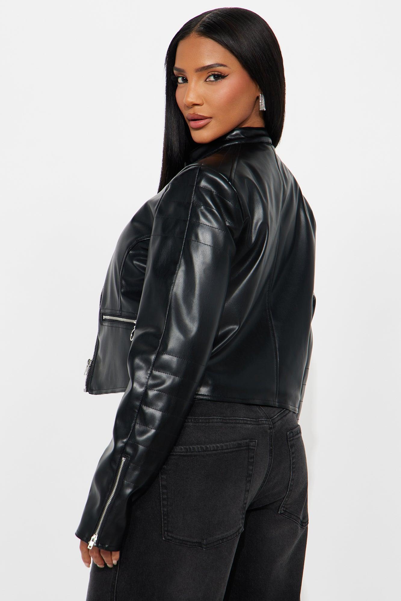 Maya Cropped Faux Leather Moto Jacket - Black Female