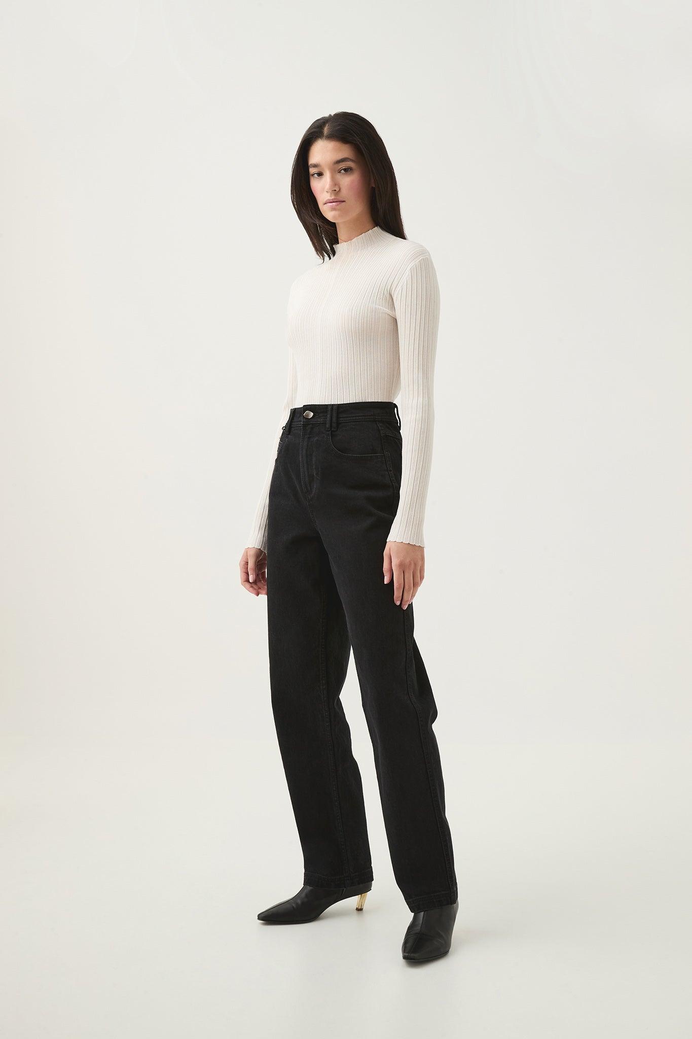 PRODUCT DETAILS Women’s jeans Relaxed, straight-leg silhouette Front fly closure with gold accent button Twin belt loops Coin pocket with D-ring Front and pockets Shop All Pants SIZE AND FIT Model wears a size 8/S Model: 175cm/ 5'9 Bust: 80cm Waist: 60cm Hips: 88cm FABRICATION 99% Cotton 1% Spandex