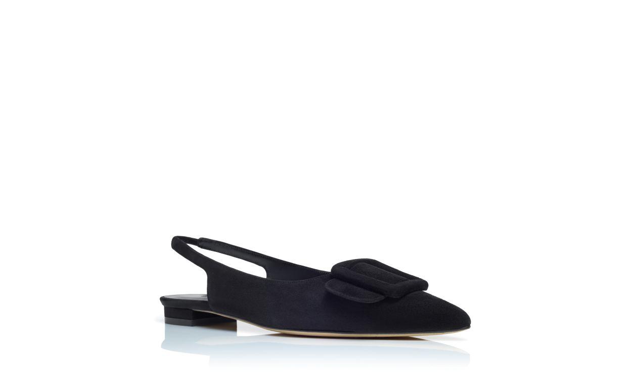 MAYLURA Black Suede Buckle Detail Slingback Flat Pumps