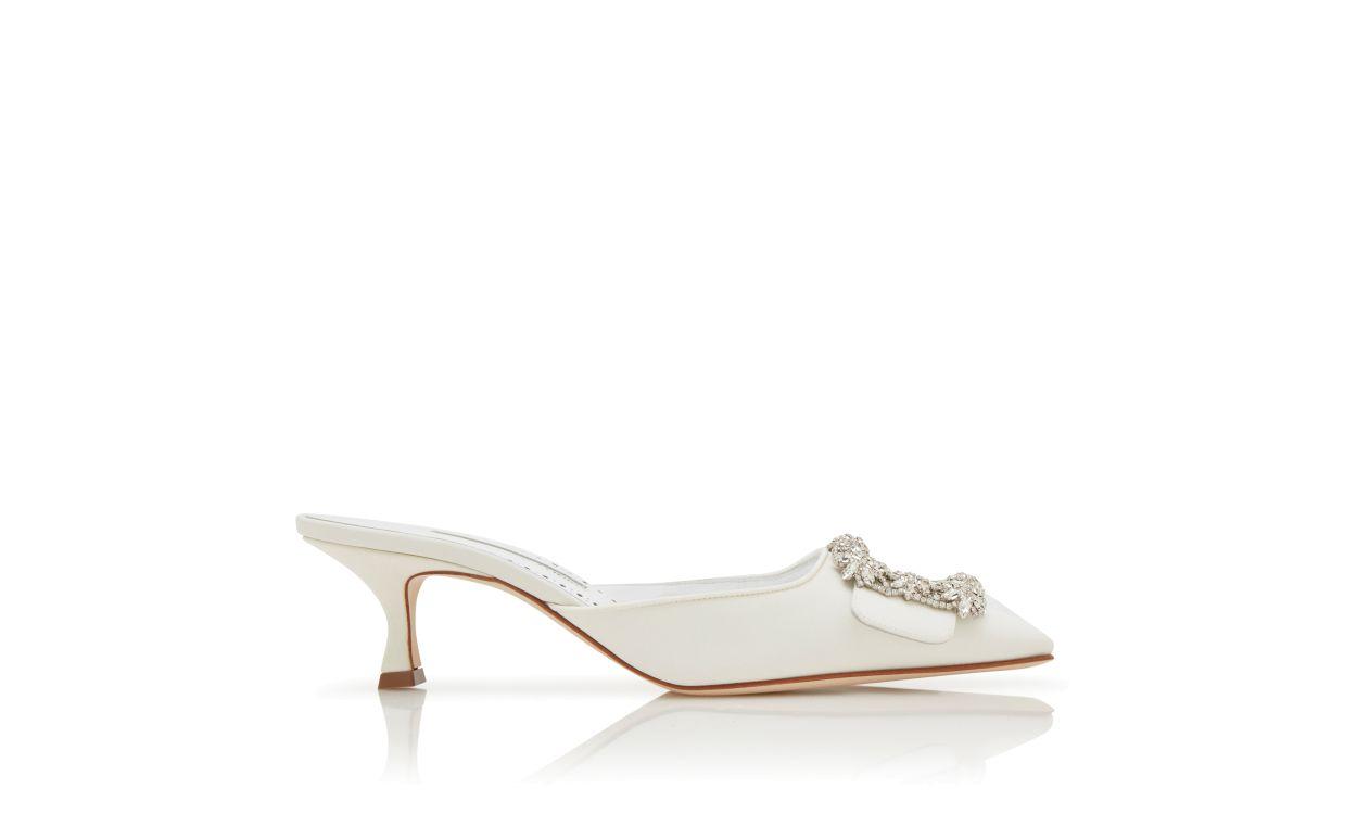 MAYSALE BRIDAL White Crepe de Chine Jewel Buckle Mules