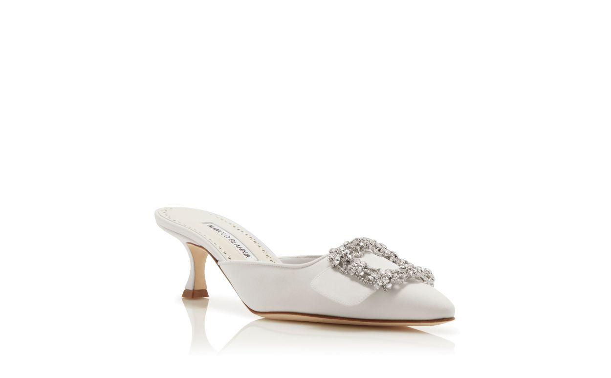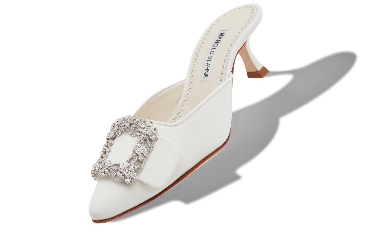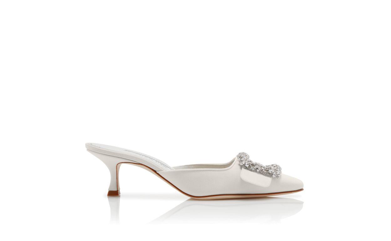 MAYSALE JEWEL White Satin Crystal Buckle Mules