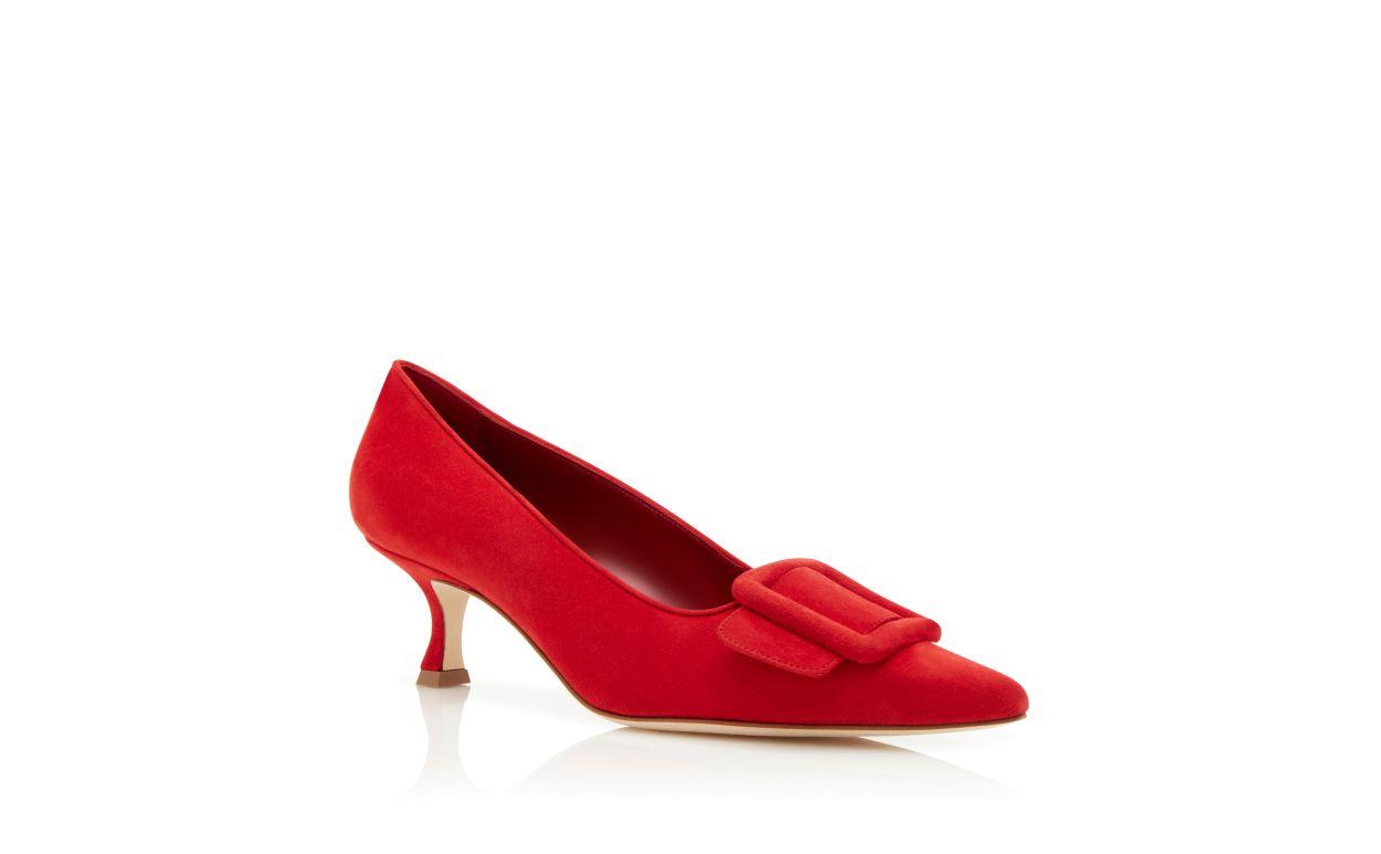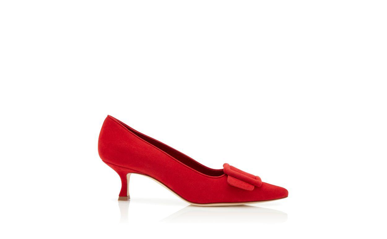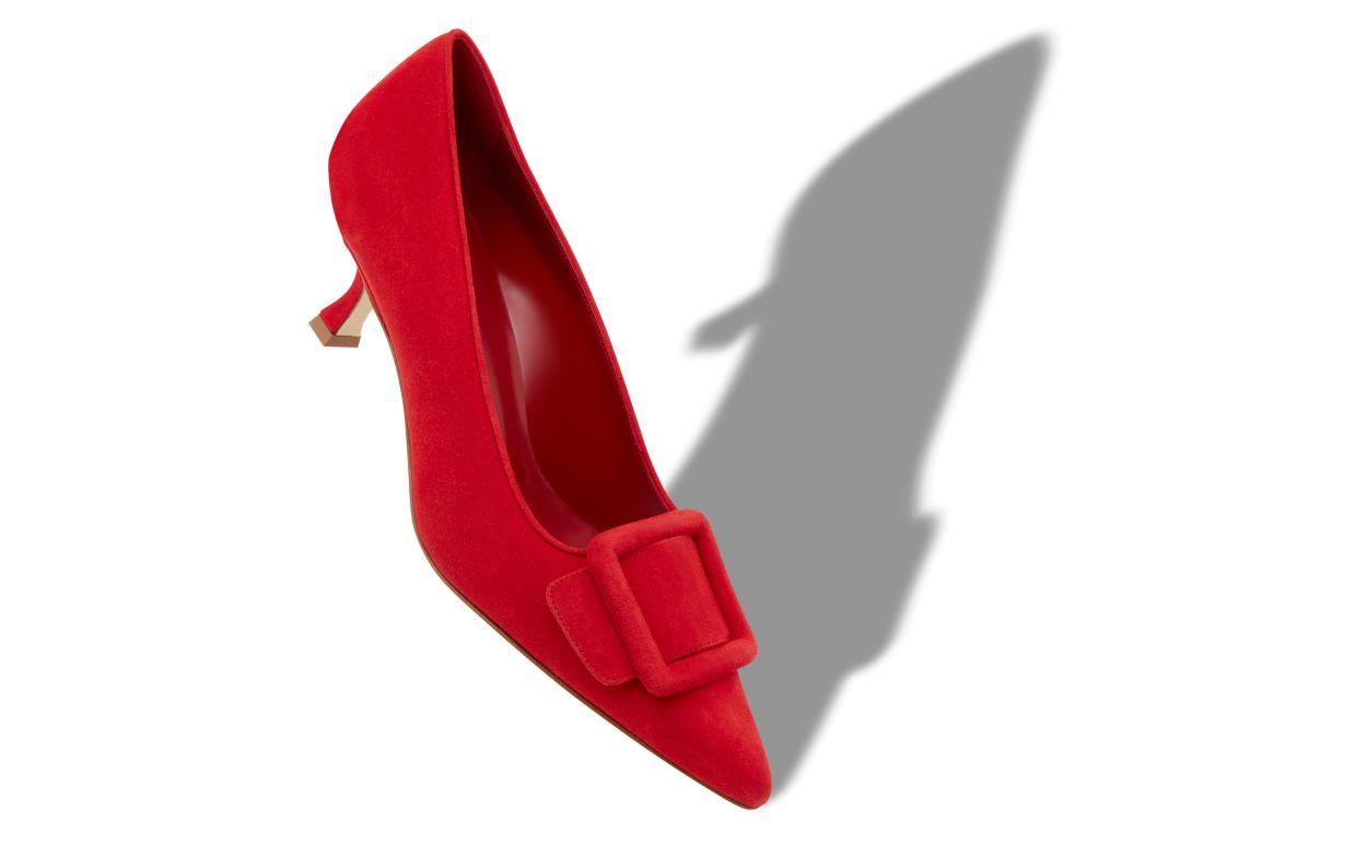 MAYSALEPUMP 50 Red Suede Buckle Detail Pumps