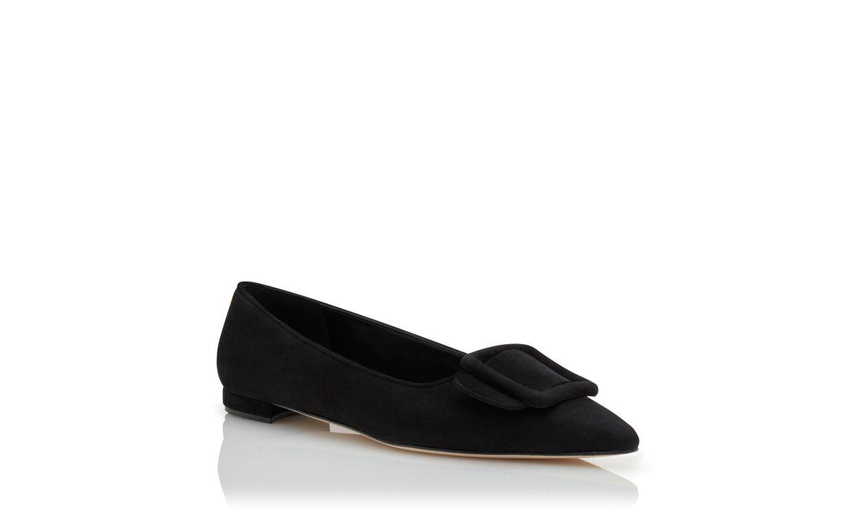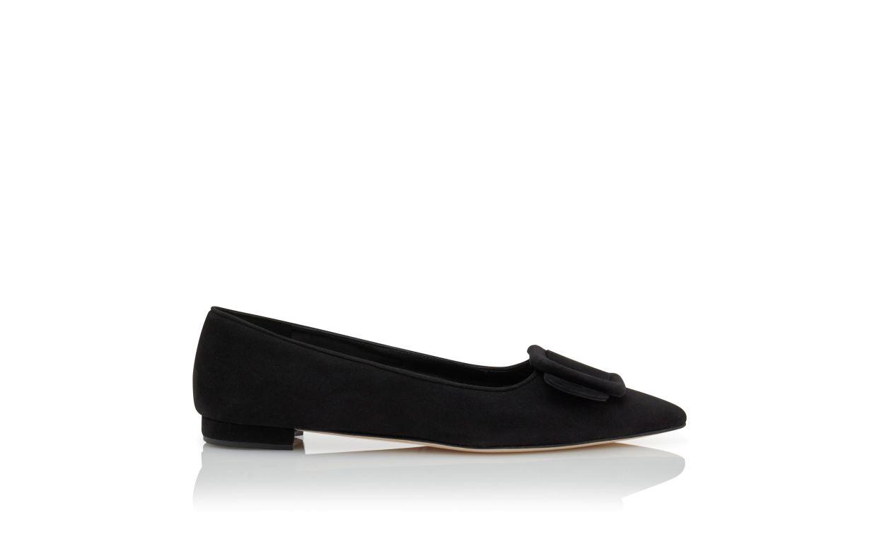 MAYSALEPUMPFLAT Black Suede Buckle Detail Flat Pumps
