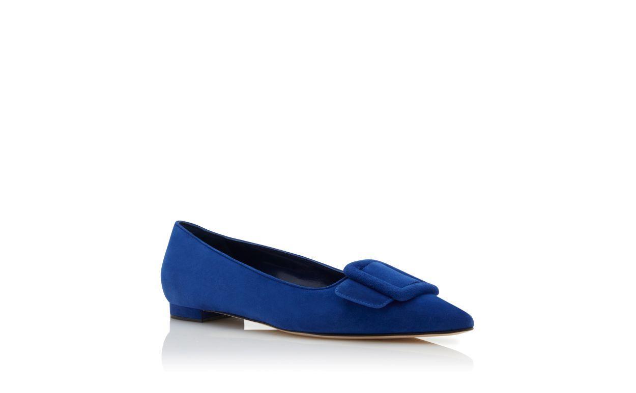 MAYSALEPUMPFLAT Blue Suede Buckle Detail Flat Pumps