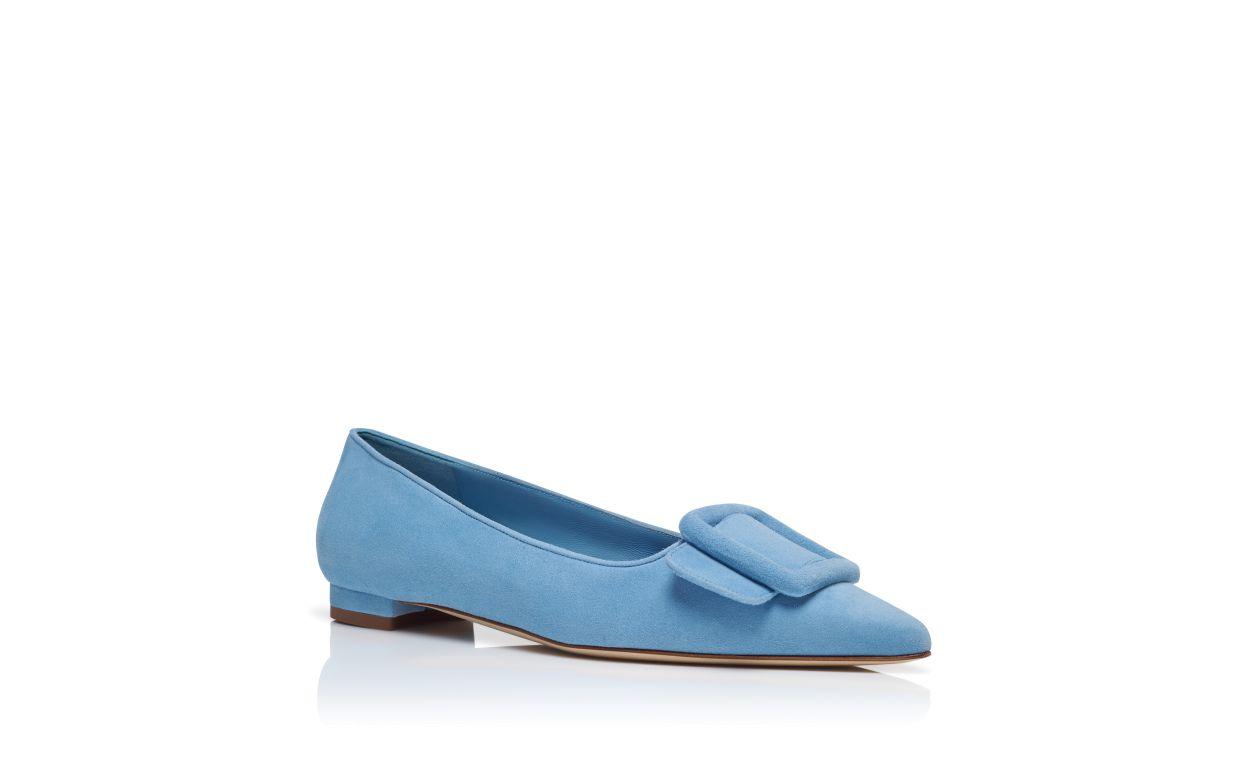 MAYSALEPUMPFLAT Light Blue Suede Buckle Detail Flat Pumps