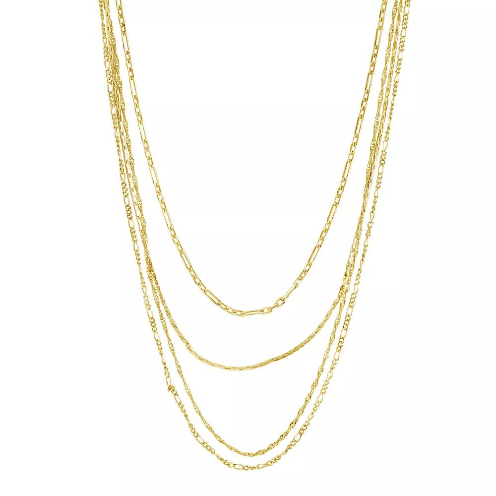 Add an eye-catching accent to your next look with this multi-layered chain necklace. Add an eye-catching accent to your next look with this multi-layered chain necklace. Clasp: lobster-claw Nickel free Metal: brass Longest chain: 19 in. Shortest chain: 14 in. Packaging: boxed Plating: 14k gold, rhodium Finish: polished Extender: 2 in. Chain type: link, cable Size: 16. Gender: female. Age Group: adult.