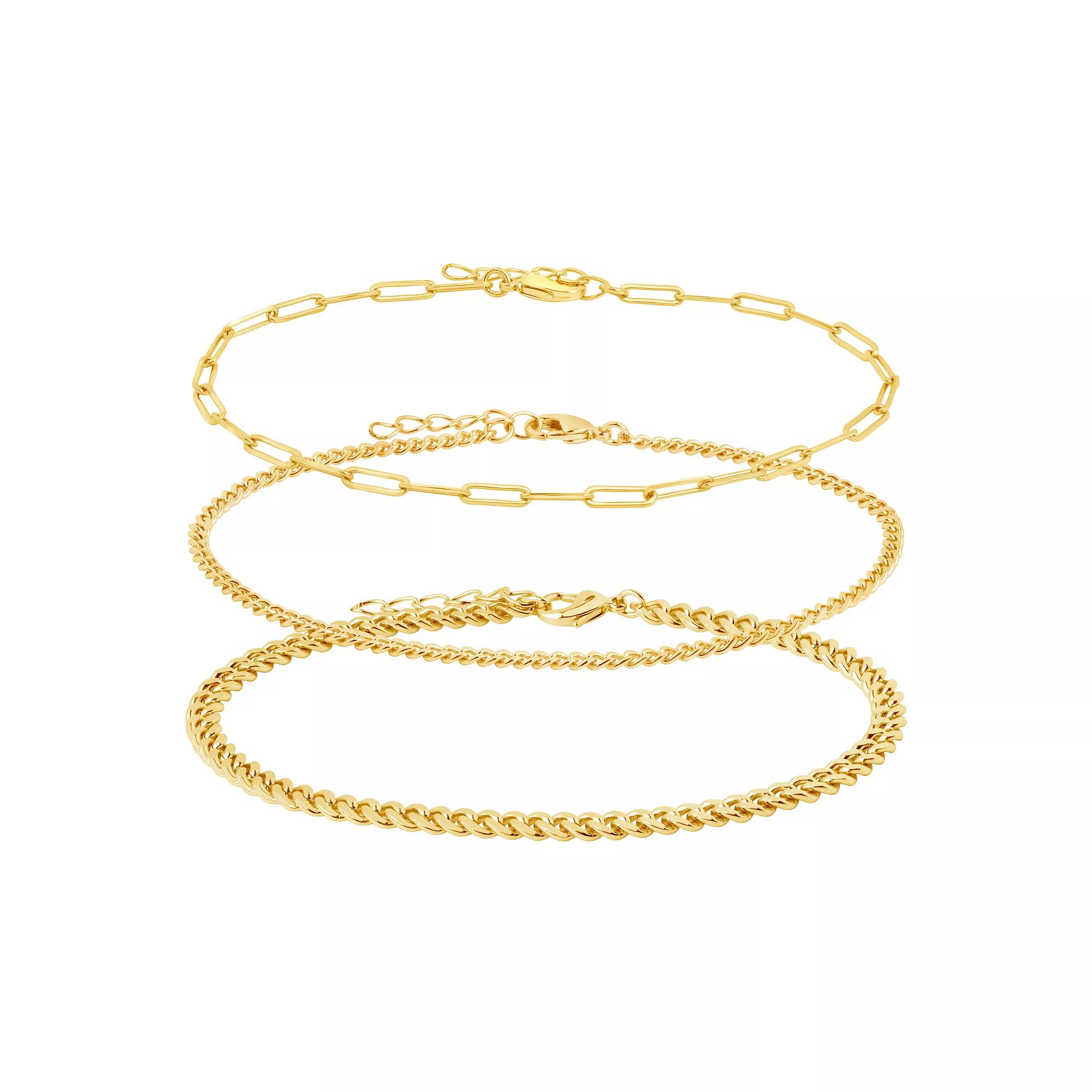MC Collective Chain Anklet Trio Set, Women's, Size: 9", Gold Tone