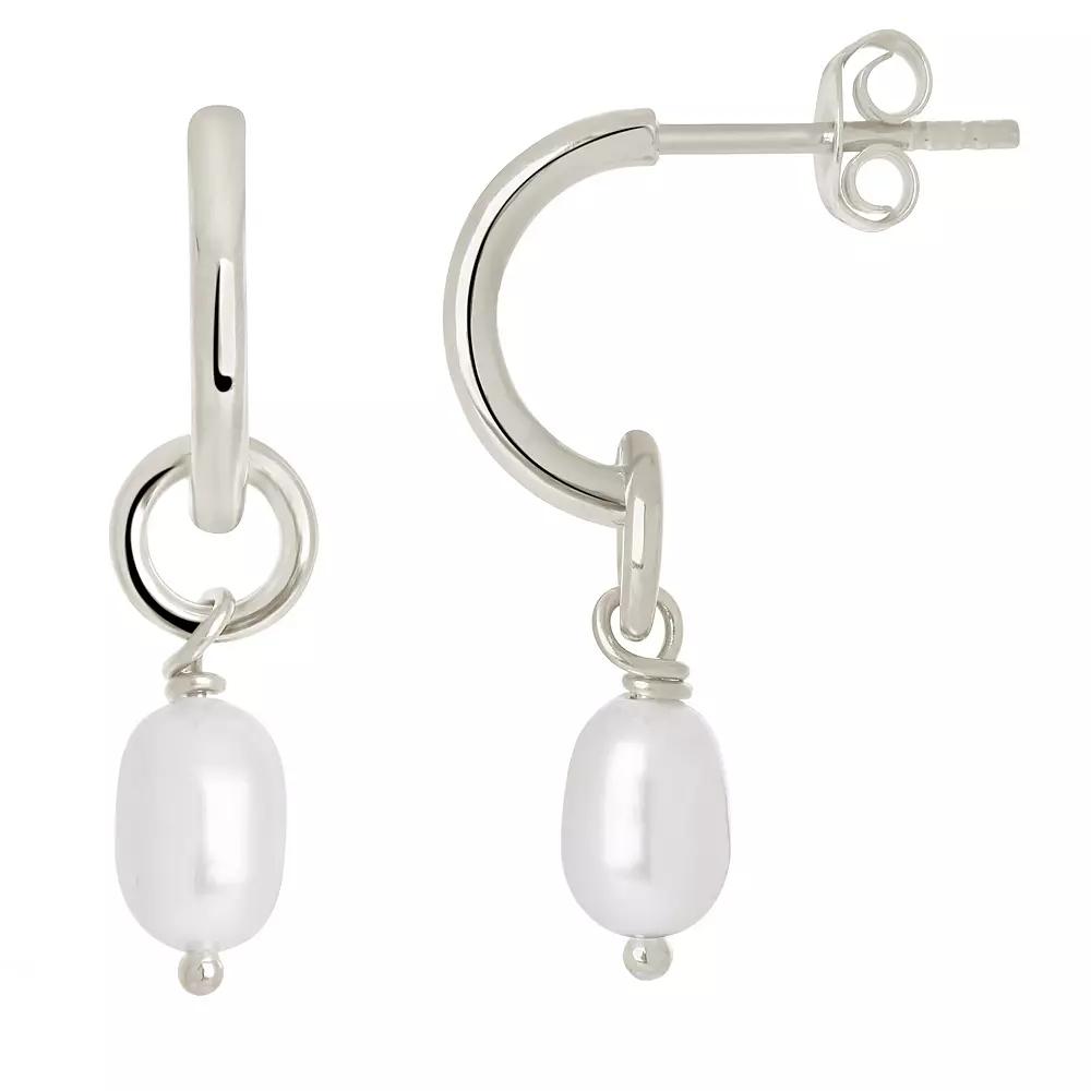 Versatile and elegant, the Sterling Forever Pearl Drop Hoops Earrings are designed to go with every outfit in your wardrobe. Dainty drop earrings with delicate pearl dangle detailing. Crafted from 14K gold plated sterling silver or sterling silver. Available in gold and silver tones. Post back closure. Imported. Measurements: Drop: 1; Pearl: 0.35.
