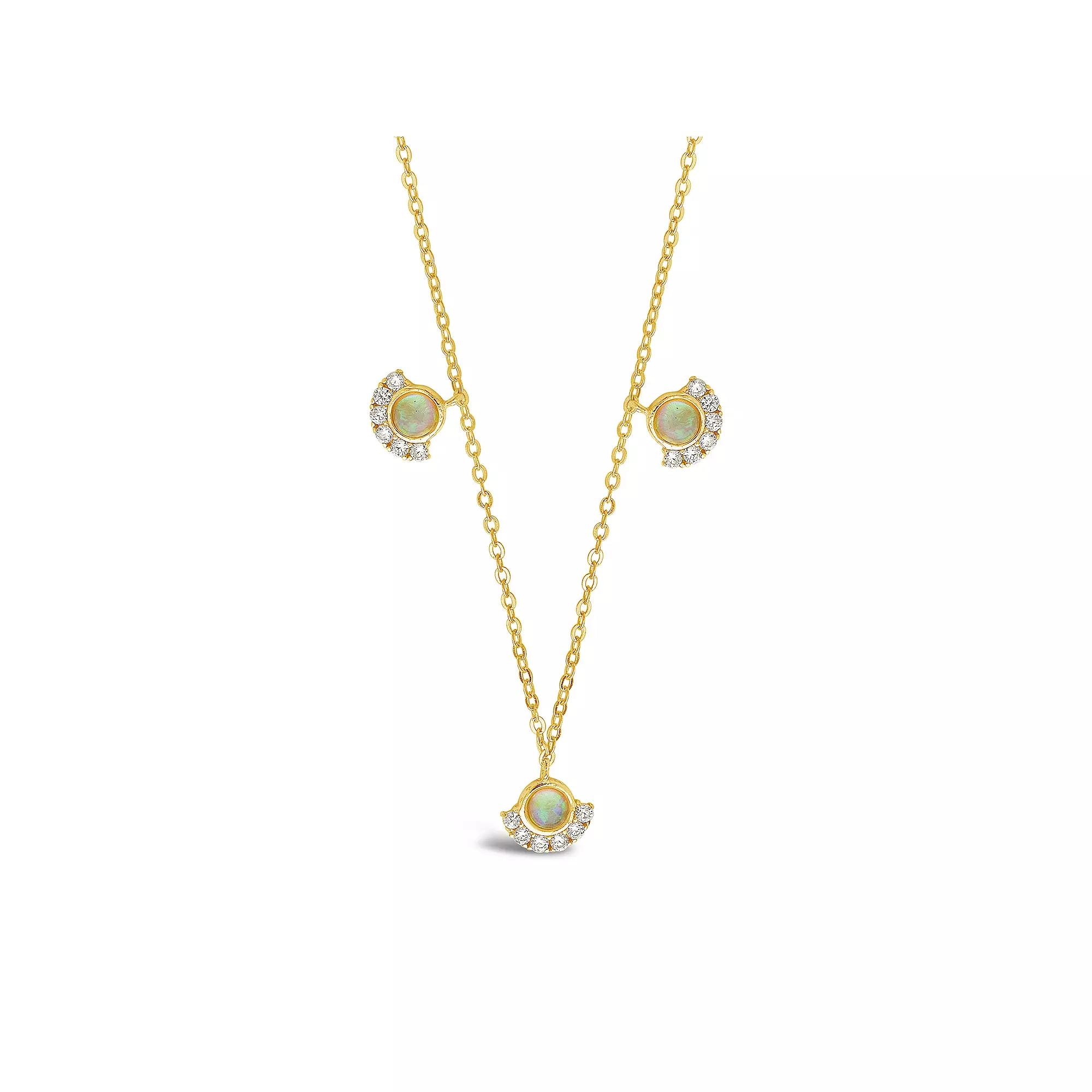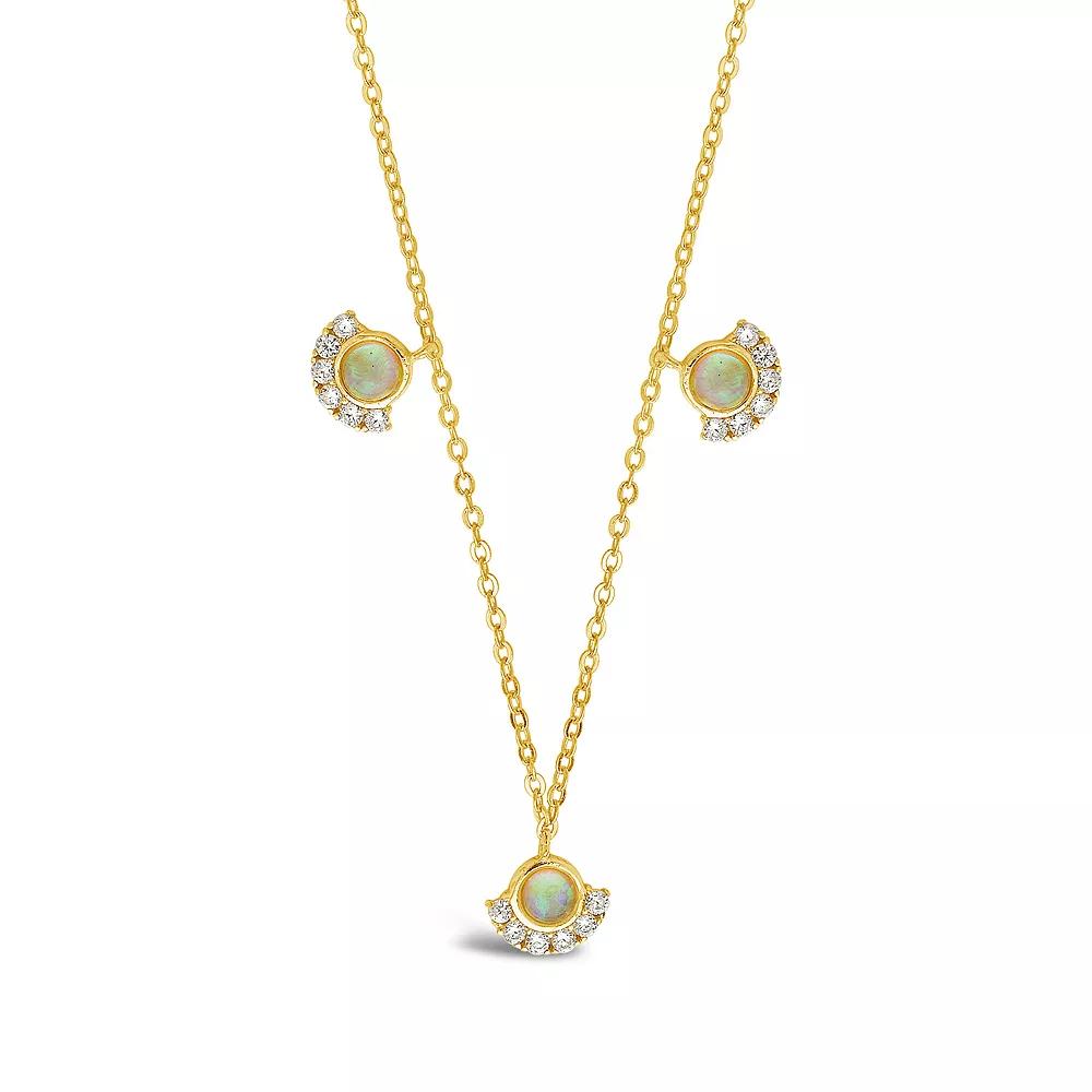 Add ethereal beauty with this MC Collective sterling silver half halo opal pendant necklace. The soft glow of opal pairs perfectly with the shimmering accents. Click on this JEWELRY & WATCHES GUIDE to learn about fit, styles, materials and more! Add ethereal beauty with this MC Collective sterling silver half halo opal pendant necklace. The soft glow of opal pairs perfectly with the shimmering accents. Click on this JEWELRY & WATCHES GUIDE to learn about fit, styles, materials and more! FEATURES Chain length: 16 in. Chain type: link Clasp: lobster-claw Nickel free Metal: sterling silver Plating: 14k gold Finish: polished White opal cabochonsSTONE DETAILS Stone type: cubic zirconia Total weight: less than 1/10 ct. Stone size: 2 mm x 2 mm Shape: round Setting: pave Gemstones may have been treated to enhance their appearance. Special care may be required. Please visit our Gemstone Treatment & Special Care Guide for more information. Size: 16-18" ADJ. Color: Gold Tone. Gender: female. Age Group: adult.