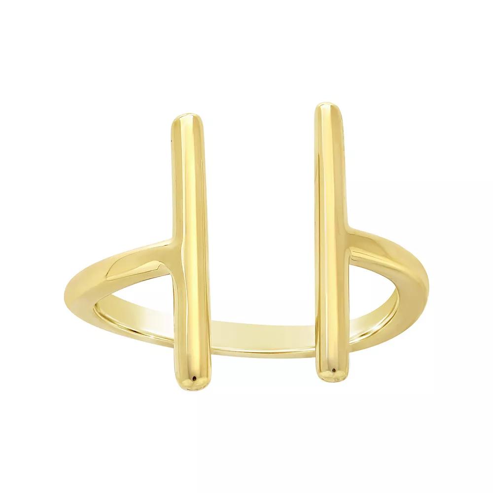 Accessorize your look with this beautiful ring. Accessorize your look with this beautiful ring. Width: 1.5 mm Metal: sterling silver Plating: rhodium, 14k gold Finish: polished Packaging: decorative card Size: 7. Gender: female. Age Group: adult. Material: Gold Over Sterling.