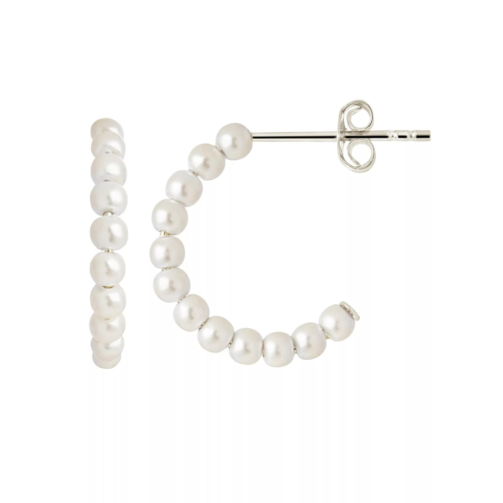 Make your evening special in the sparkling and elegant Sterling Forever Pearl Hoops Earrings. Sterling silver construction. Wear a strand of pearls lined on a glamorous silver silhouette. 14K gold plated sterling silver or sterling silver. Post back. Imported. Measurements: 0.75 hoop, 3mm pearls.