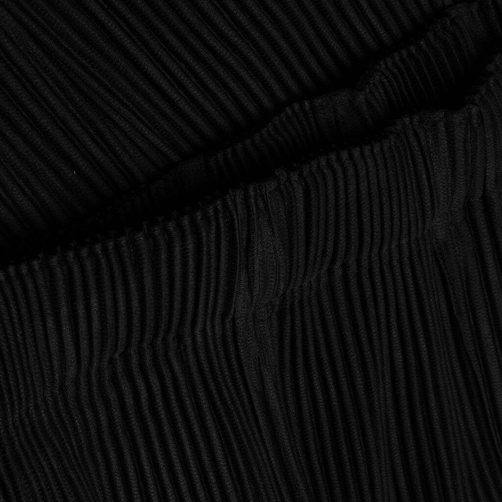 Designed for function and ease, the MC February Pants in Black reflect Homme Plissé Issey Miyake’s commitment to thoughtful design. Made in Japan from 100% polyester, the lightweight, quick-drying construction is enhanced by the brand’s signature pleated fabric—offering breathability, structure, and wrinkle resistance. Functional details include side pockets, an internal drawcord, and a front button opening for everyday convenience. 100% Polyester Signature pleated fabric Straight-leg fit Elastic waistband with adjustable drawstrings Lightweight and wrinkle-resistant construction Side seam pockets Made in Japan Style No: HP56JF109-15