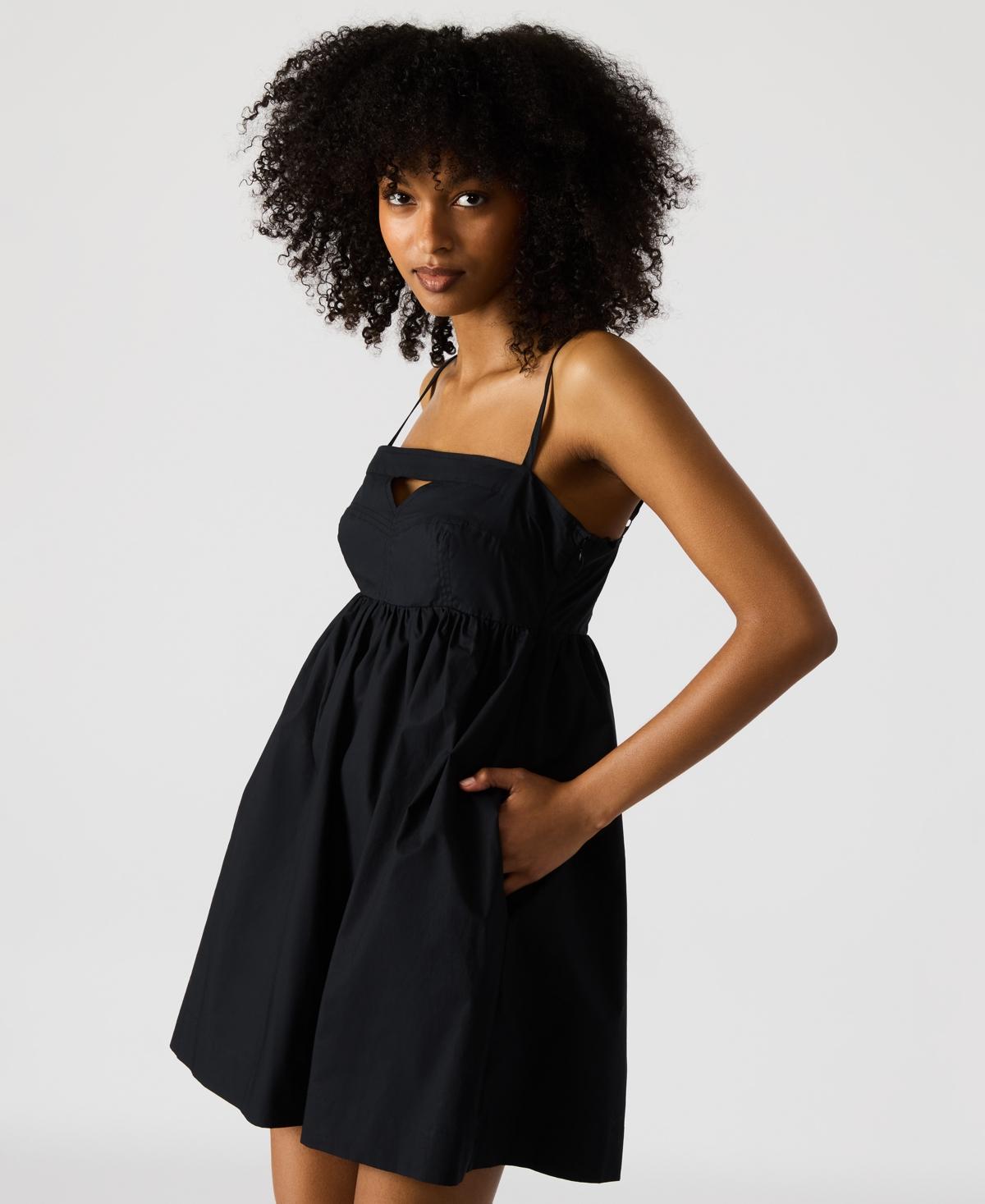 Expertly crafted, the MEADOW dress is a versatile addition to your wardrobe. Its mini length and adjustable straps allow for a comfortable and flattering fit. The flowy skirt and cut-out detail add unique and stylish elements. Perfect for any occasion, this dress is a must-have for any fashion-forward individual. Mini dress Cut-out detail Adjustable straps 100% cotton Hand wash Nina is 5ft 9.5in and is wearing a size small Imported