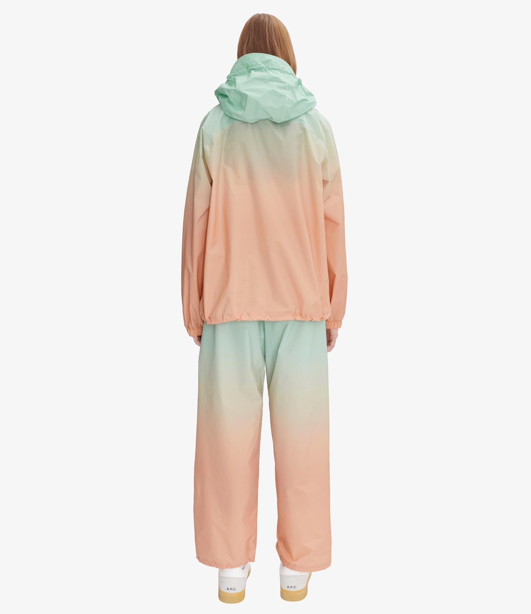 A.P.C. x Asics jacket.- Unisex sizing. For women, we recommend that you order one size smaller than usual.- Straight cut. - Crew neck adjusts with two tone-on-tone stoppers and a visor hood. - Waterproof two-way zip closure. - White A.P.C. and Asics logo over the heart. - Two side pockets. - Sleeve elasticated at wrist. - Wear with the Haze trousers.