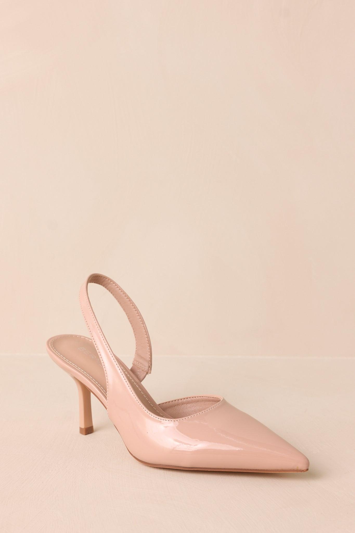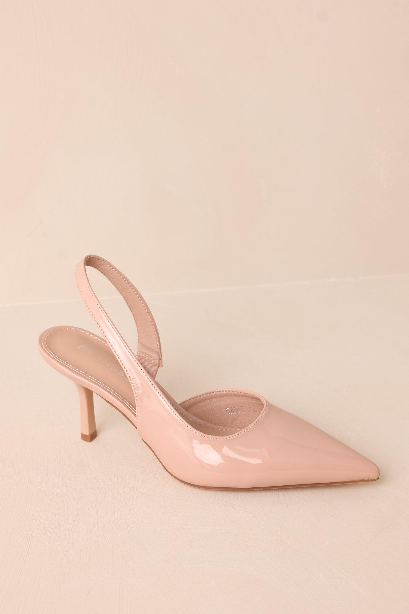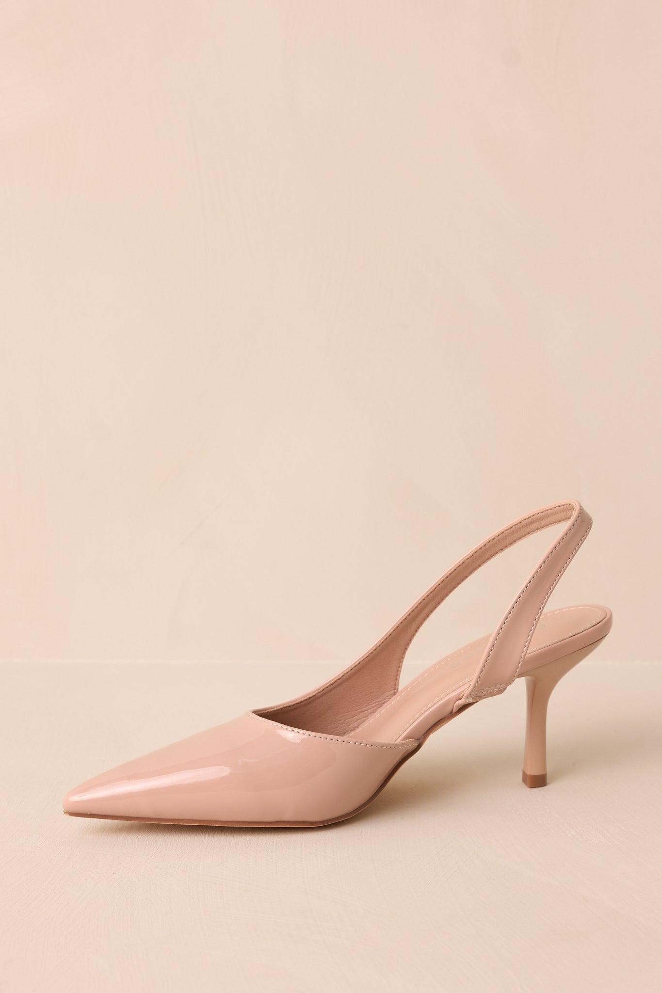 Step into style with our Beige Slingback Kitten Heels. These classy and comfortable shoes feature a low heel and slingback design, perfect for all-day wear. The neutral beige color pairs well with any outfit, making them a versatile addition to your wardrobe. Elevate your look with these stylish and practical heels. These beige kitten heels feature a pointed toe, a glossy beige material throughout, a slingback ankle strap, cushioning in the sole, and a thin kitten heel.