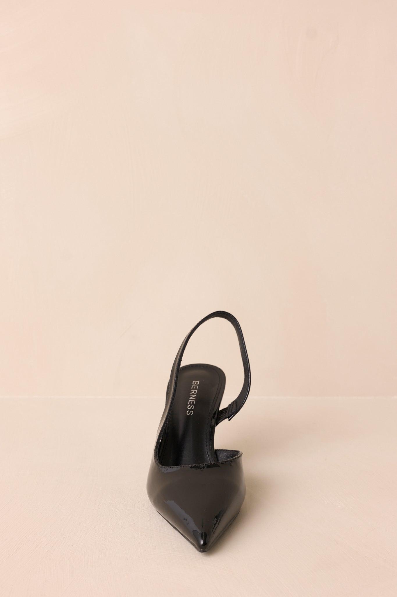 Step into style with our Meant To Be Mine Black Slingback Kitten Heels. These classy and comfortable shoes feature a low heel and slingback design, perfect for all-day wear. This classic color pairs well with any outfit, making them a versatile addition to your wardrobe. Elevate your look with these stylish and practical heels. These black kitten heels feature a pointed toe, a glossy finish, a slingback ankle strap, and cushioning in the sole.