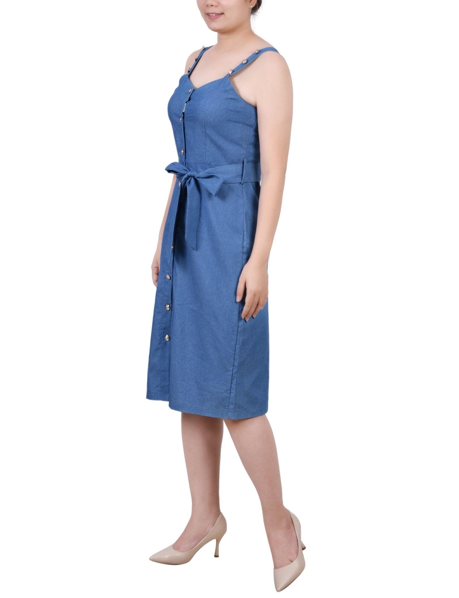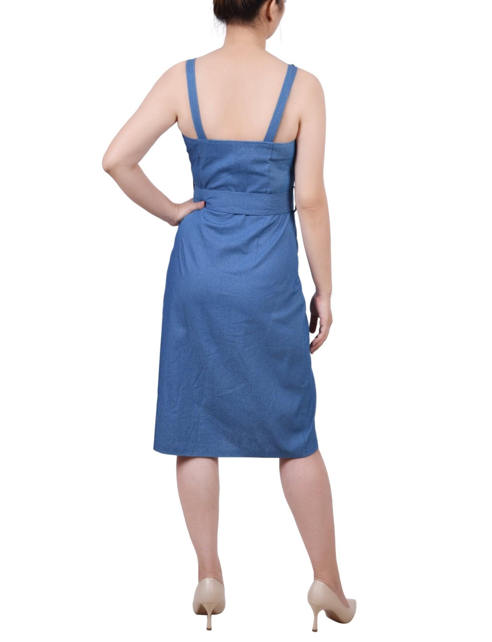 Med Denim Sweetheart Neck Chambray Sundress - Petite