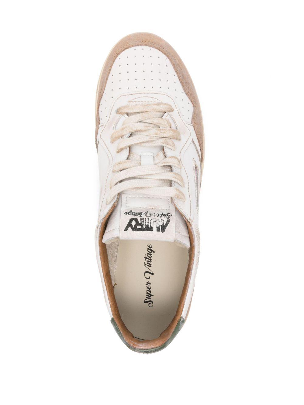 Autry Medalist leather sneakers | White | white/sand beige | calf leather | suede panelling | distressed finish | logo patch at the tongue | logo patch to the side | branded heel counter | perforated toebox | front lace-up fastening | round toe | branded leather insole | French terry lining | flat rubber sole | Rubber/Calf Leather/Fabric/Calf Leather | Low-Tops | Sneakers | Shoes | Men
