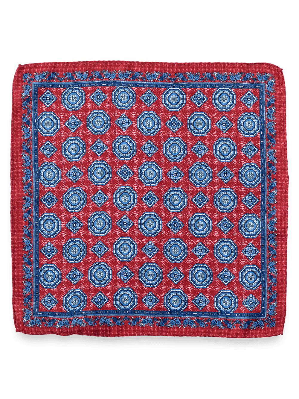 Medallion Silk Pocket Square - Red/blue