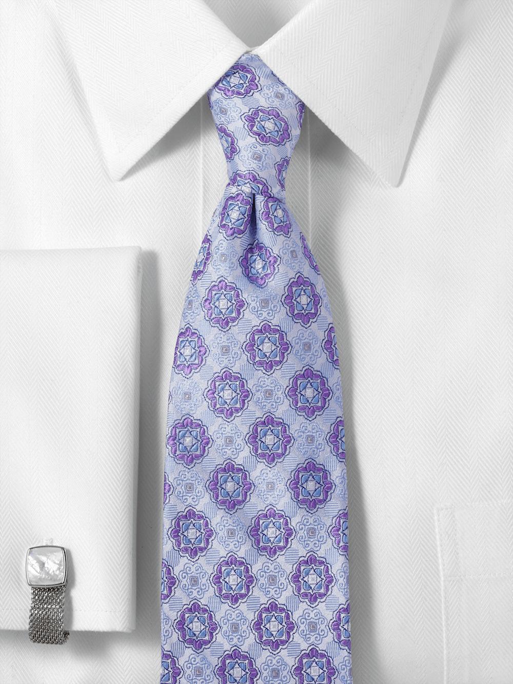 Medallion Woven Silk Tie - Purple
