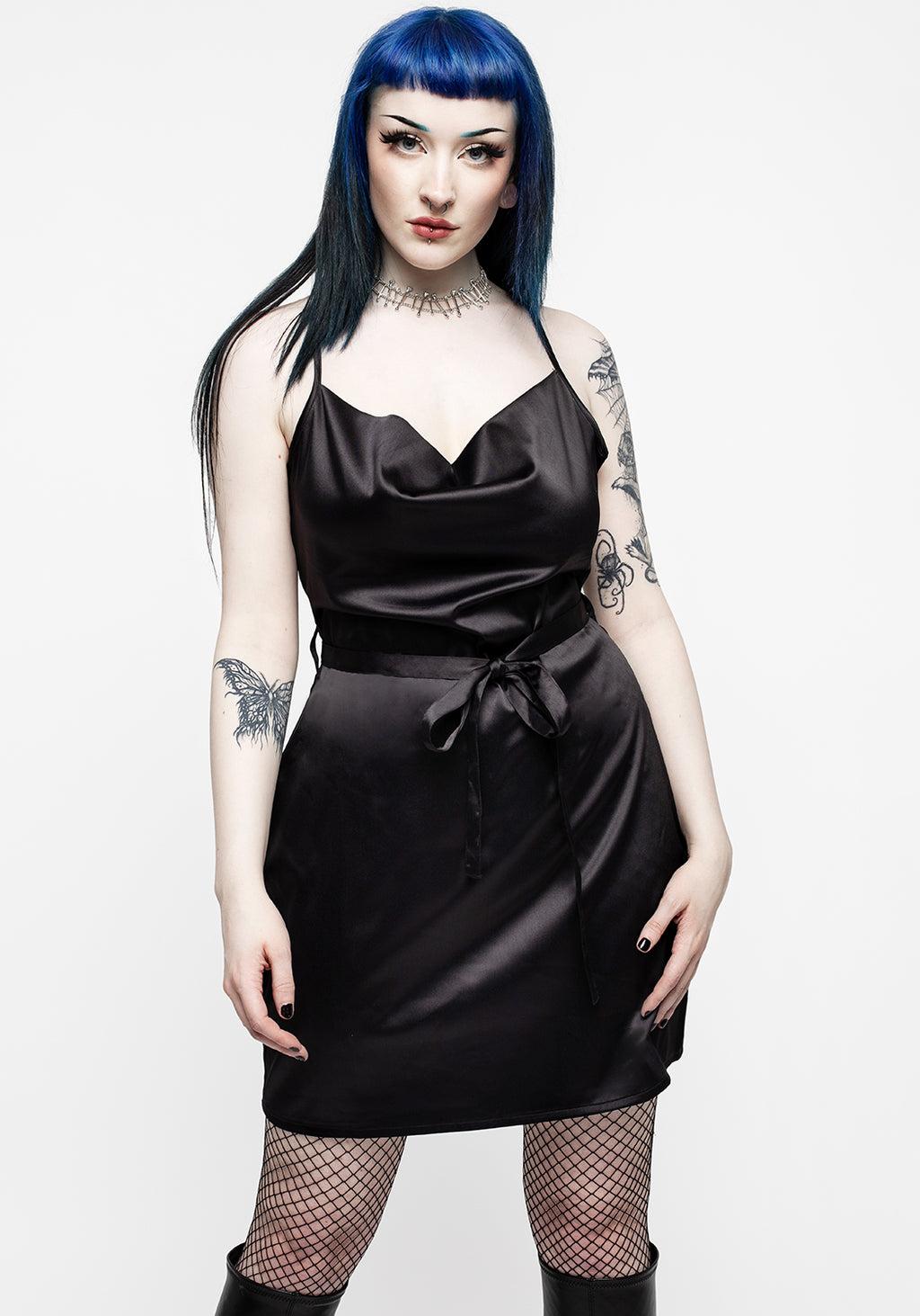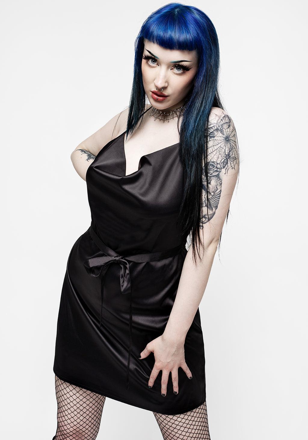 Heaven is under our feet as well as over our heads.- Black cowl-neck satin slip mini dress - Body-skimming A-line cut falls to a mini-length - Voluminous cowl neckline offers interest & balance - Adjustable cami straps cross over the low scooped back for visual excitement at every angle - Self-fabric belt loops through belt loop to tie, cinch, & define - Comfortable silky black stretch satin fabrication - Slip on for a flowy & free look - Go all in on going out 94% polyester, 6% elastaneRomy is 5’6” and wearing a UK8