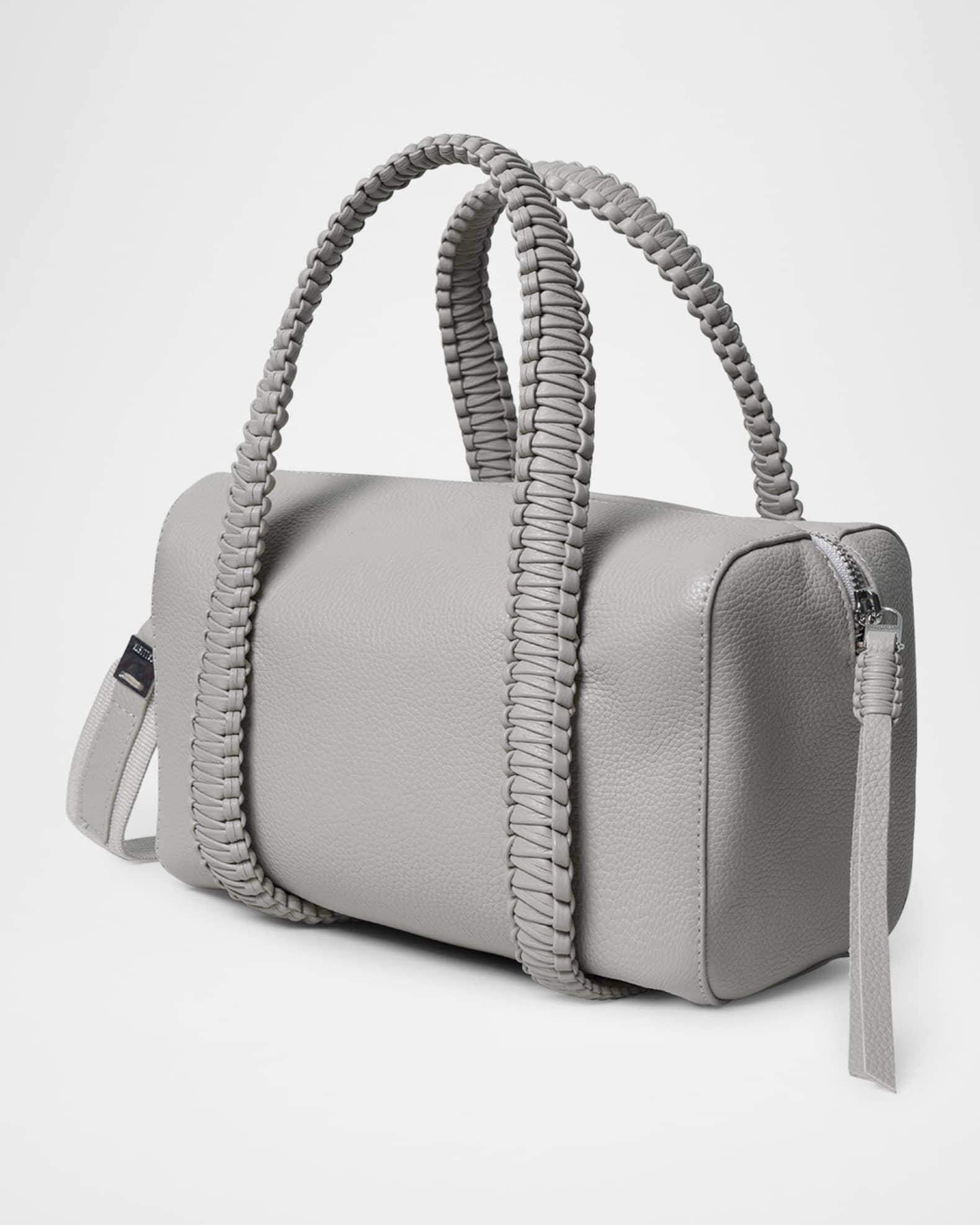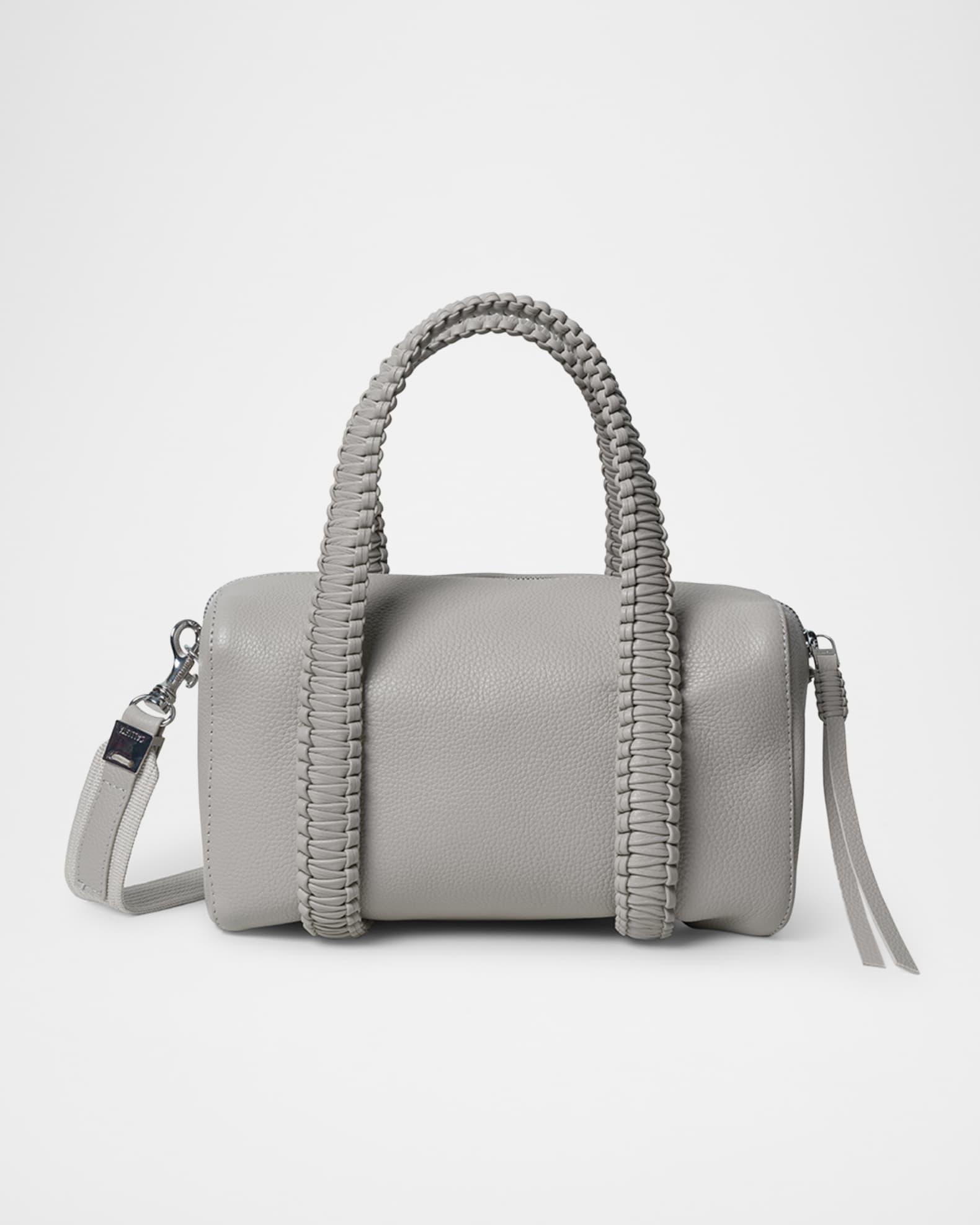 Callista bowling top handle bag in grained leather Top handles Detachable, adjustable shoulder strap, 42.5"-48.4"L Can be worn as a top handle or shoulder bag Zip top closure with leather pull Interior, one zip pocket Lining: Cotton Approx. 5.9"H x 9.8"W x 5.5"D Made in Greece