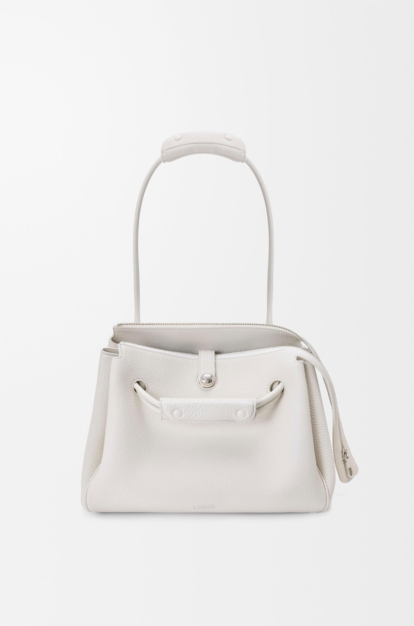 The Madrid has a structured yet supple trapeze shape with a gusset construction, adjustable handles and a Pebble magnet closure. This medium version is crafted in supple grained calfskin. *Shoulder, crossbody or top handle carry *Adjustable shoulder stap with leather extension *Anagram Pebble magnetic closure, zip closure *One internal zipped pocket, one internal card slot *Anagram Pebble metal feet *Nappa lambskin lining