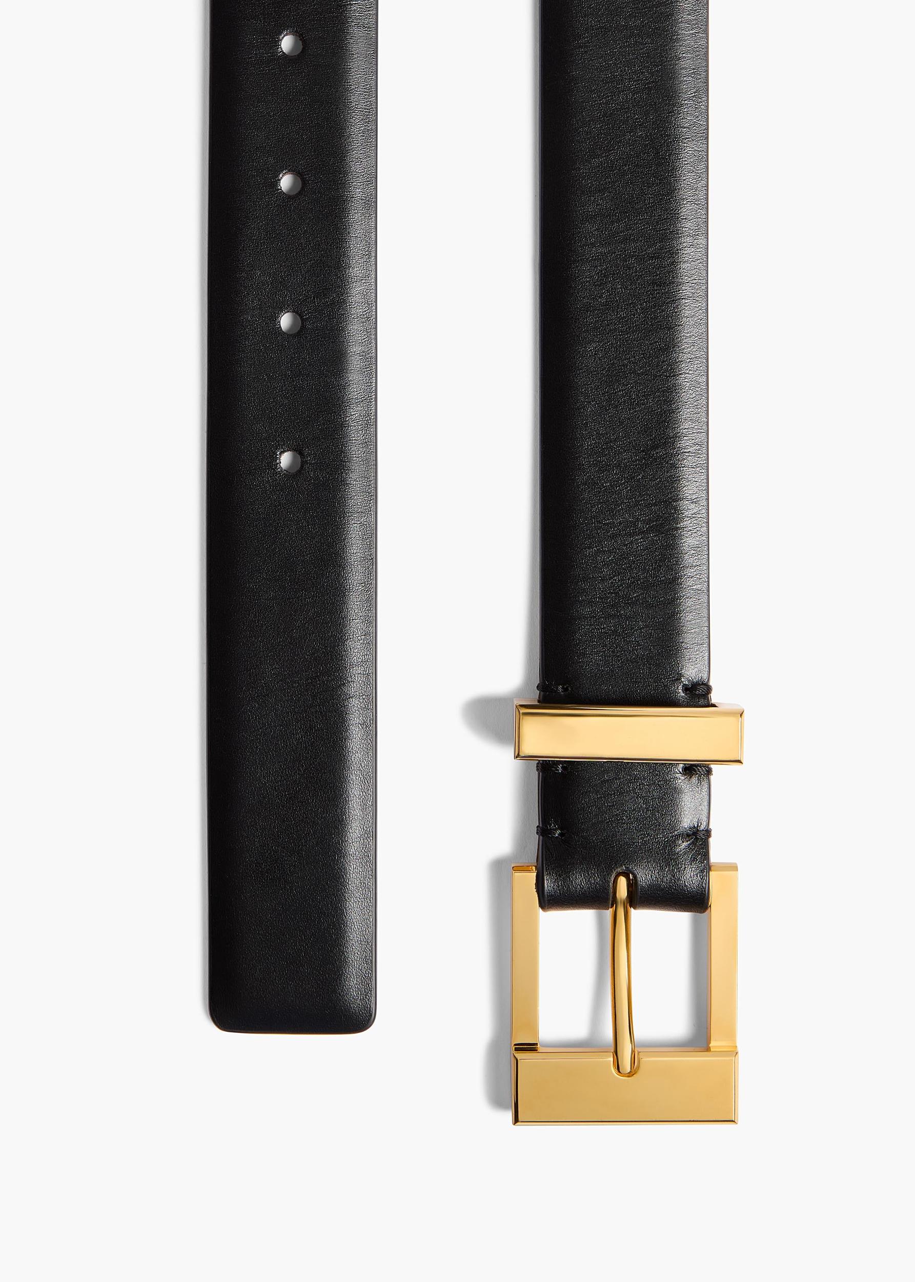 Medium Manhattan Belt in Black Leather with Gold