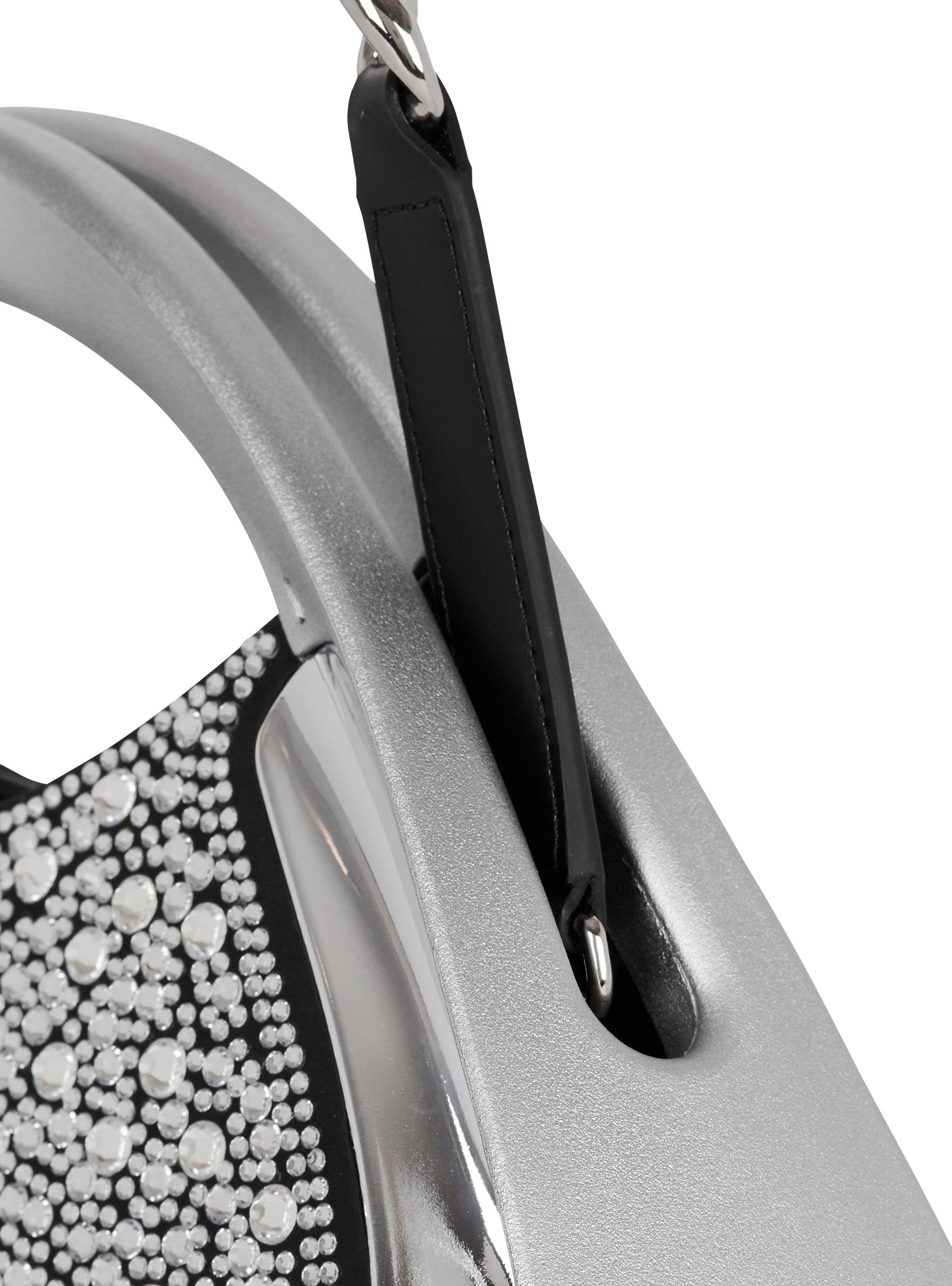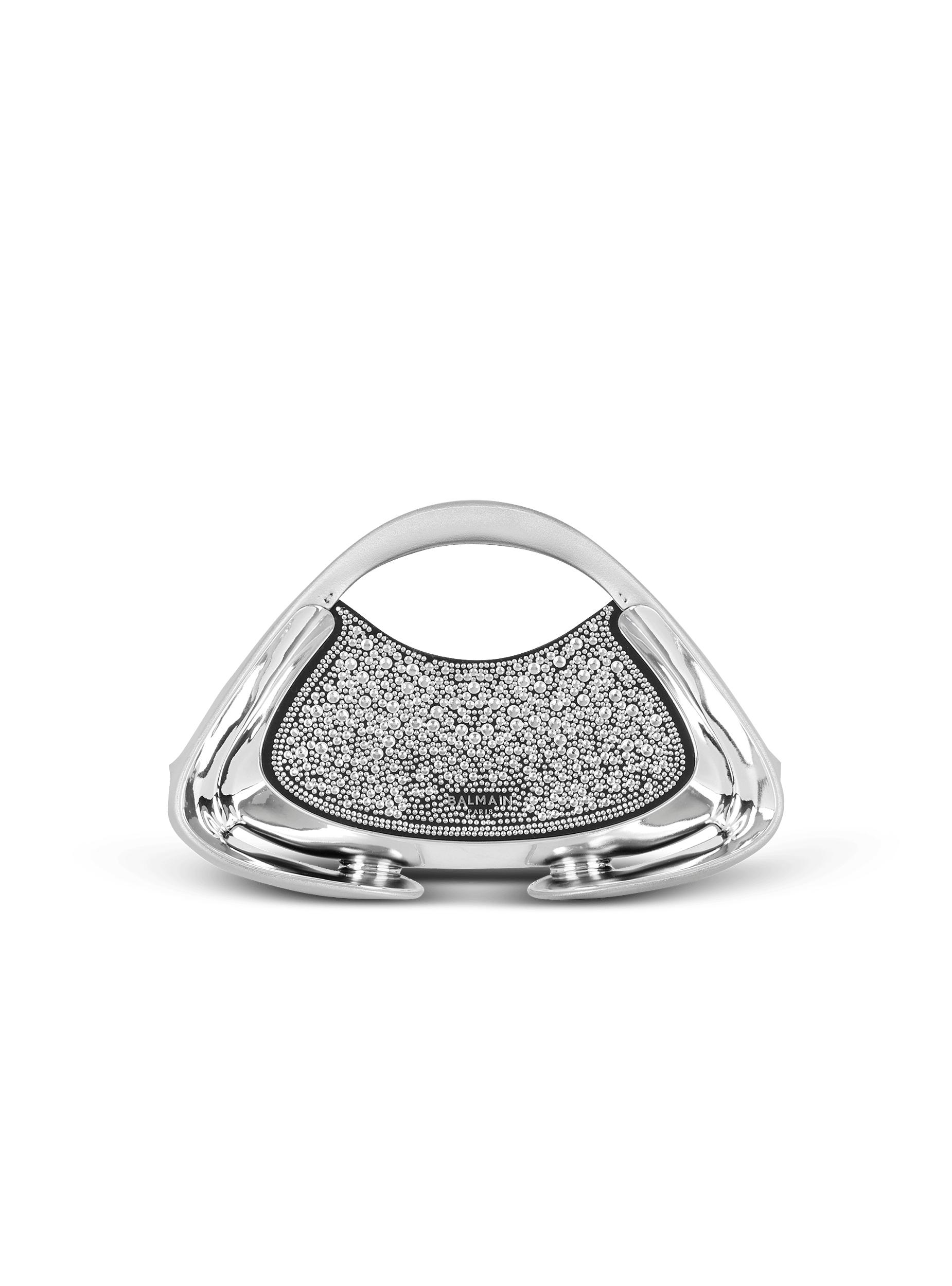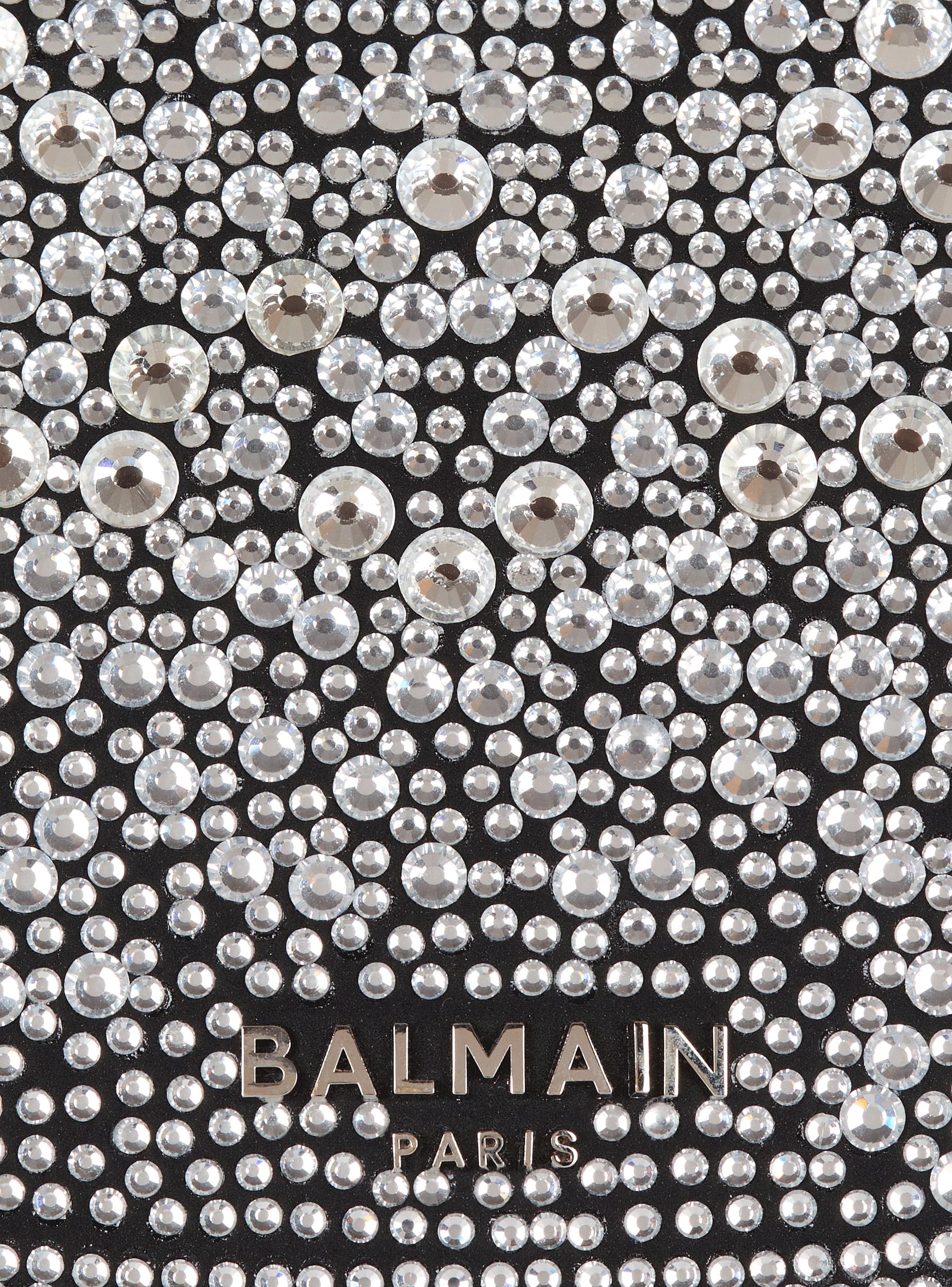 Medium rhinestone Jolie Madame bagFaux leather design with rhinestone embellishmentCarry in the hand, on the shoulder or across the bodyLeather and chain shoulder strap, adjustable and detachable with snap hooksSoft rubber handlesCarry handles extending down to the bag feetGlossy silver curved side detailingMetal Balmain Paris logo on the frontMagnetic fastening and leather tabInside leather card pocket, embossed Balmain logoLeather liningSilver hardwareDimensions: 22.5 x 35 x 8.5 cmMain material: 100% polyurethaneMade in ChinaItem: EN1DB903KPHX