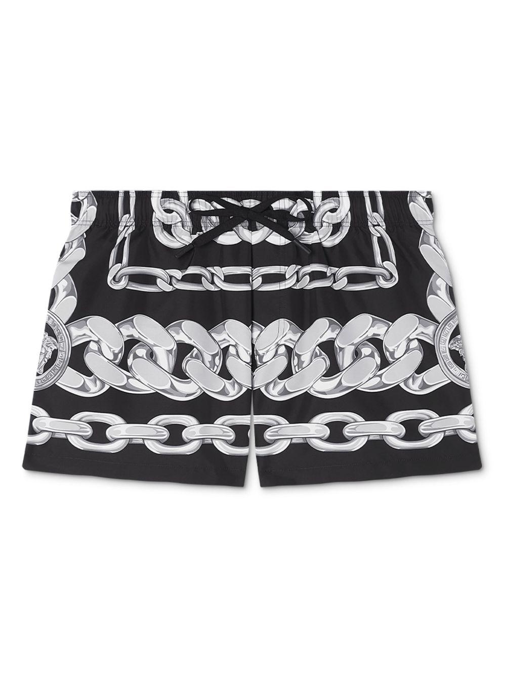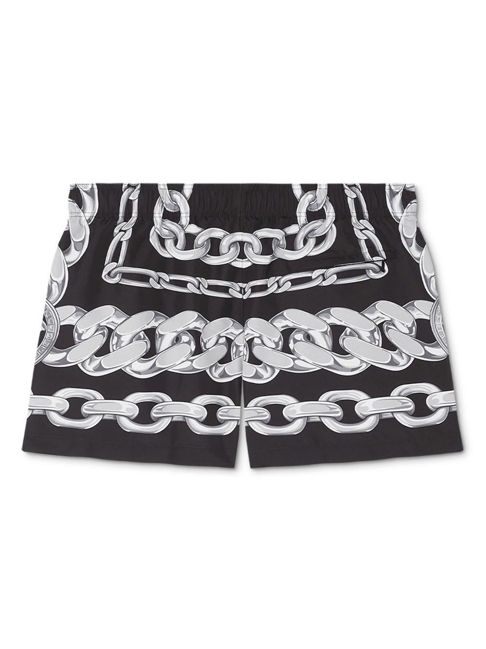 Versace Medusa Chains swim shorts | Black | black | elasticated drawstring waistband | rear zip-fastening pocket | Be mindful to try on swimwear over your own garments. | Polyester/Nylon/Elastane/Polyester | Swim & Board Shorts | Swimwear | Clothing | Men
