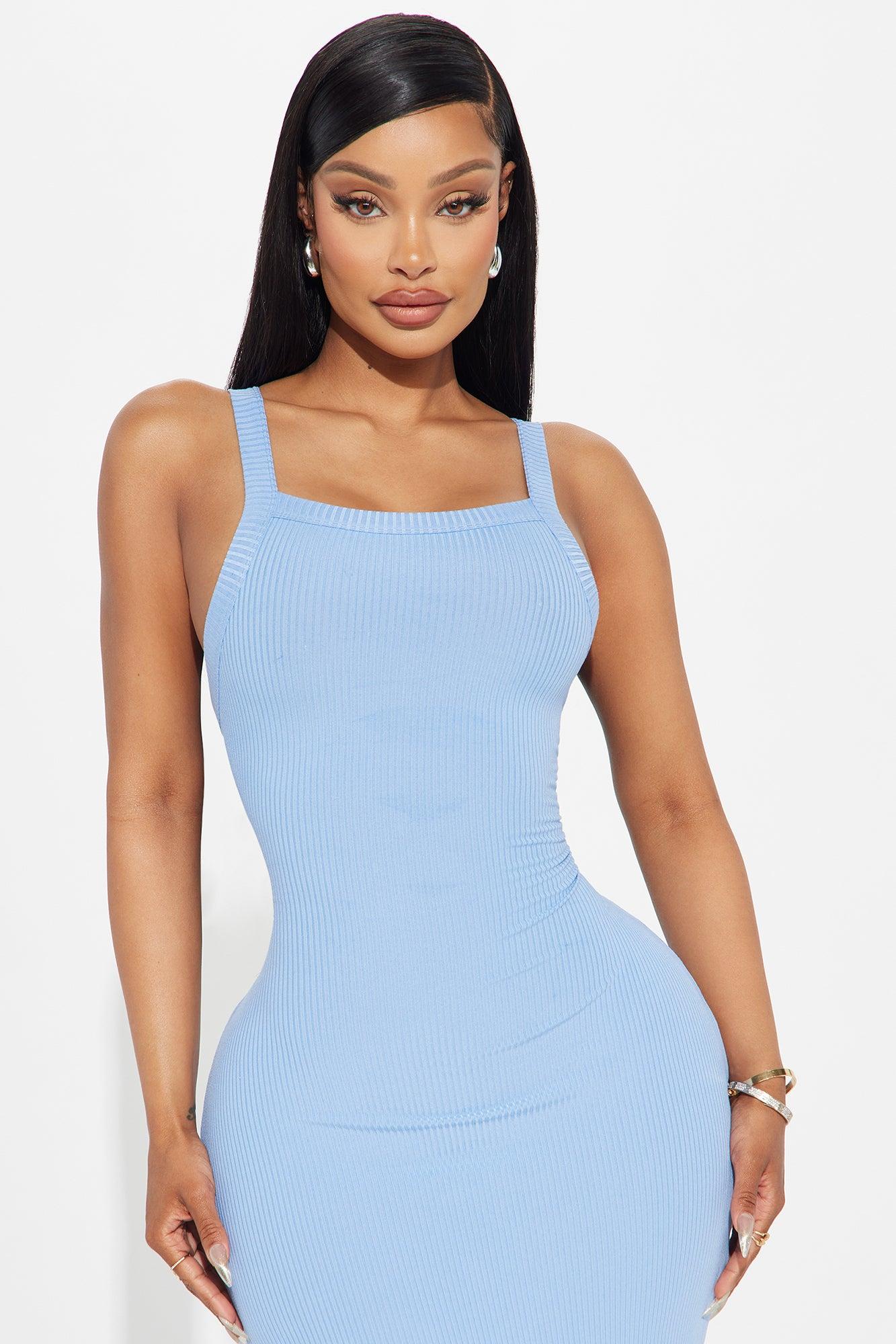 Meena Ribbed Maxi Dress - Light Blue