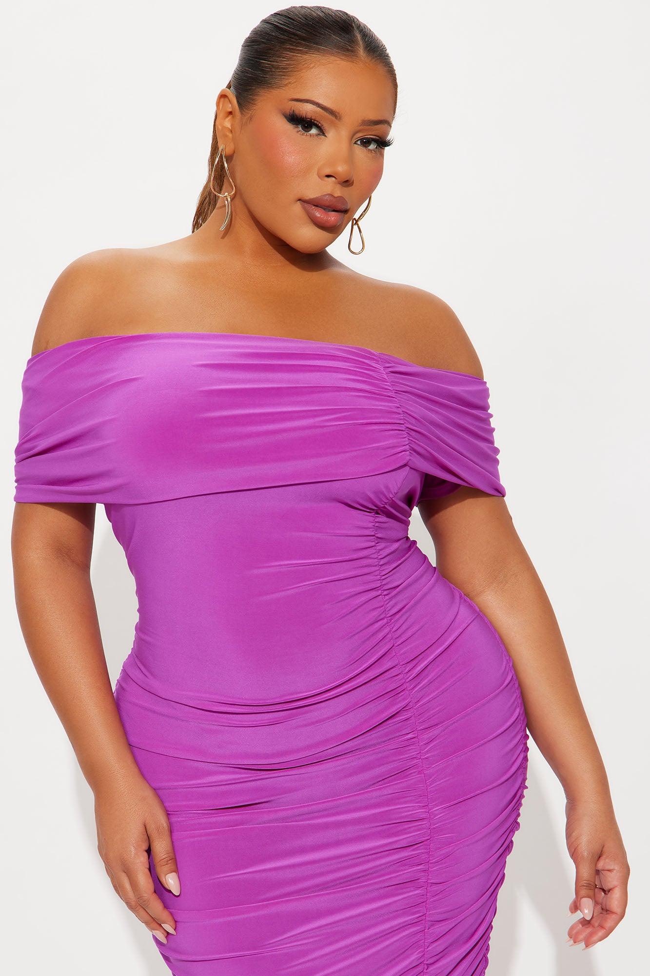 Meet Me Out Off Shoulder Midi Dress - Magenta Female