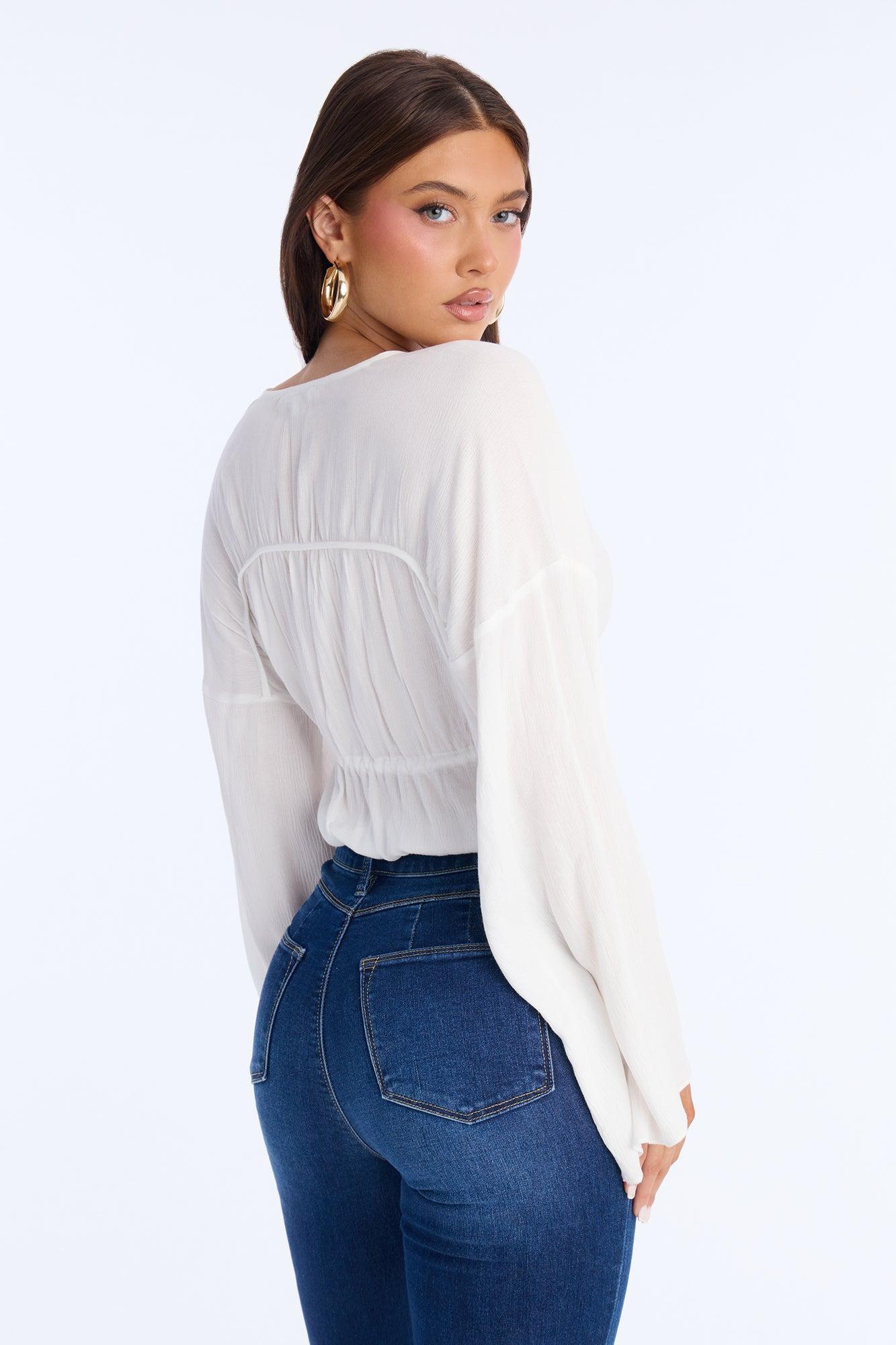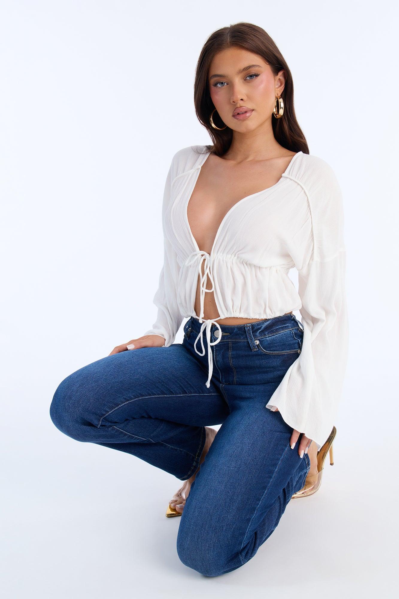 Megan Flyaway Tie Front Long Sleeve Top - White Female