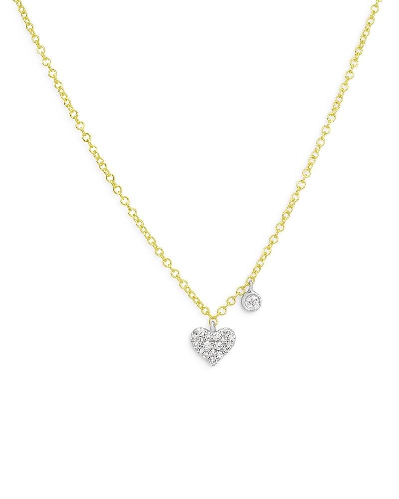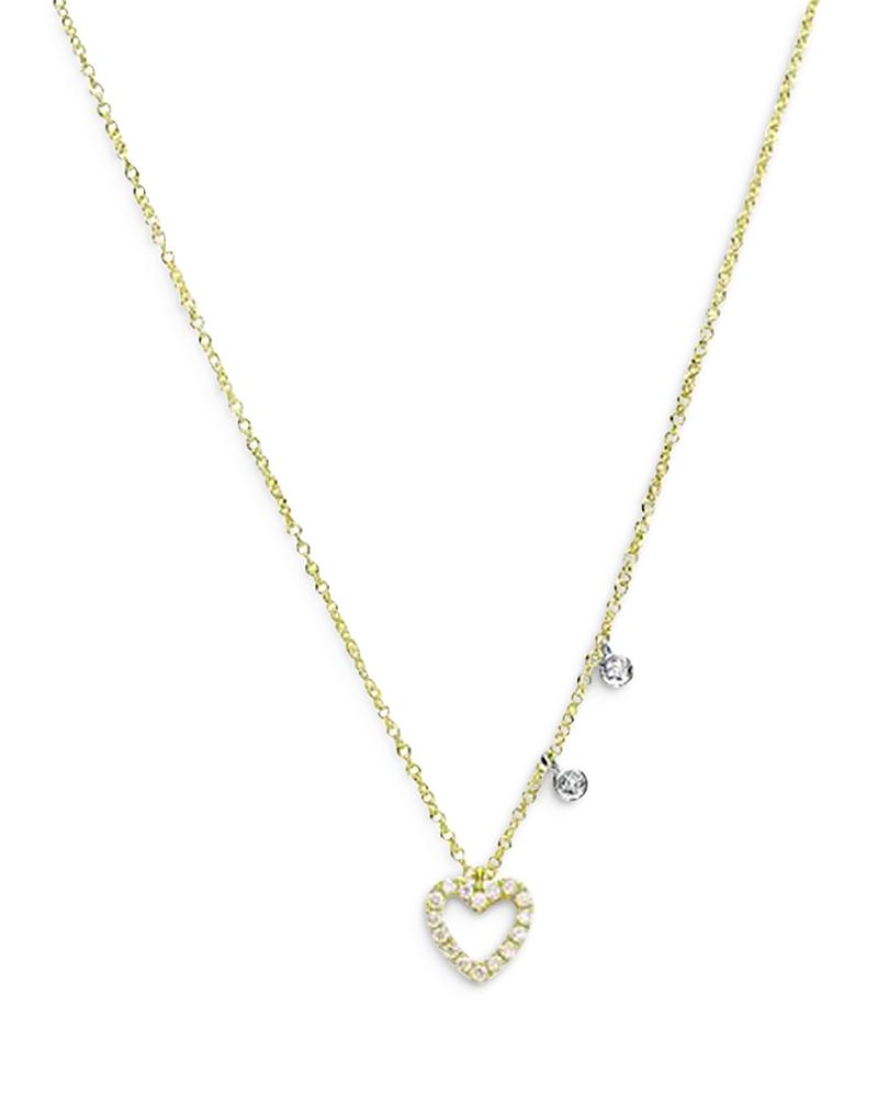 Accented with two round bezel-set white diamonds at the chain, Meira Ts Dainty necklace is crafted of 14K yellow and white gold and features a diamond-encrusted open-heart pendant. Diamonds, 0.07 tcw 14K yellow and white gold Made in Spain SIZE Adjustable 16-18 chain length. Fashion Jewelry - Fashion Designer > Meira T > Saks Fifth Avenue > Barneys. Meira T. Color: Yellow Gold.