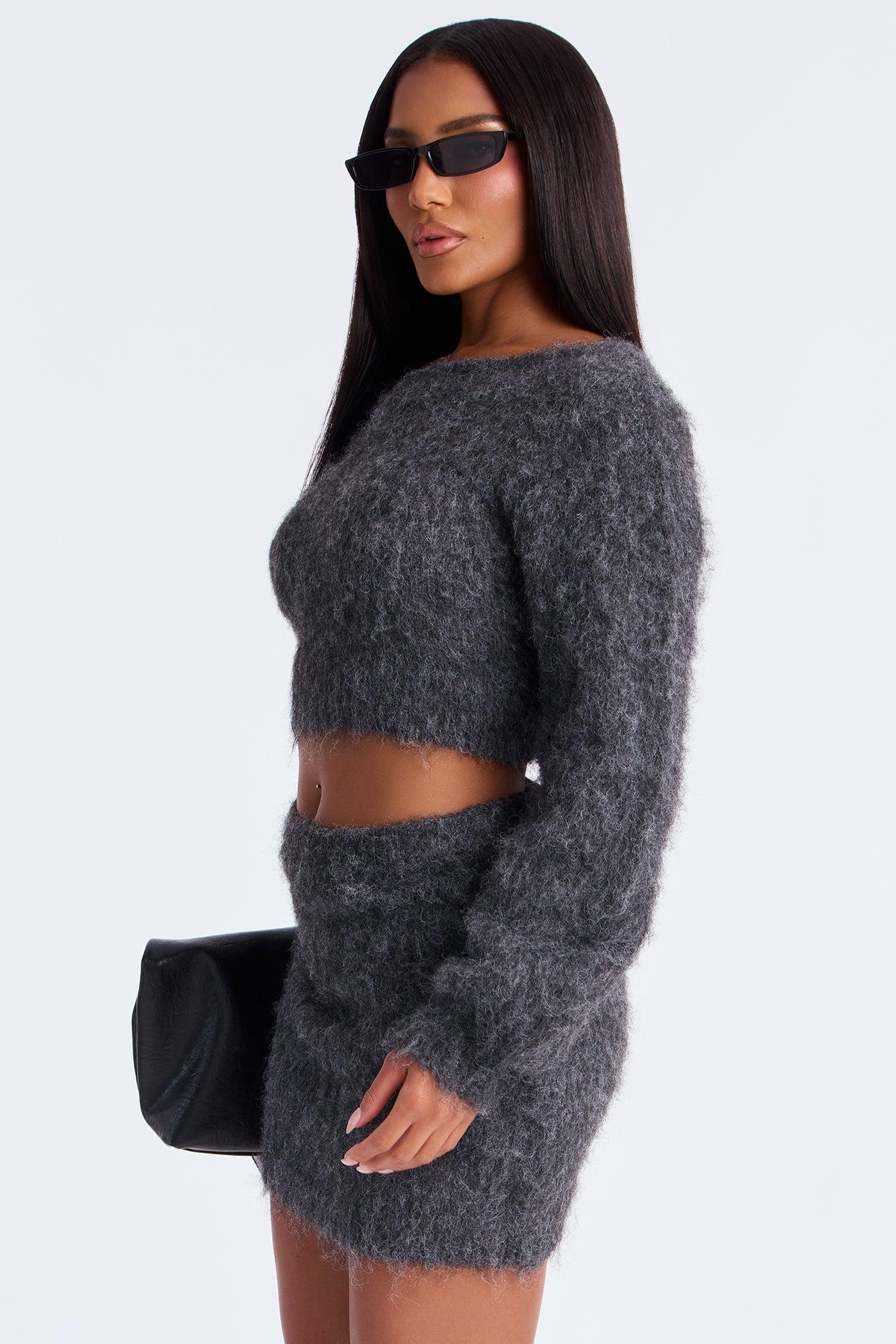 Melani Cozy Sweater Skirt Set - Charcoal Female