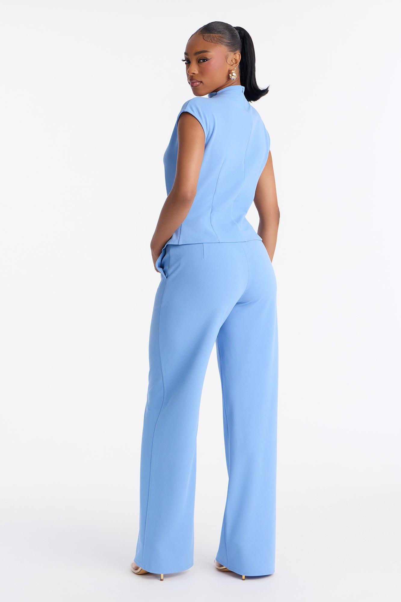 Melanie High Neck Trouser Pant Set - Blue Female