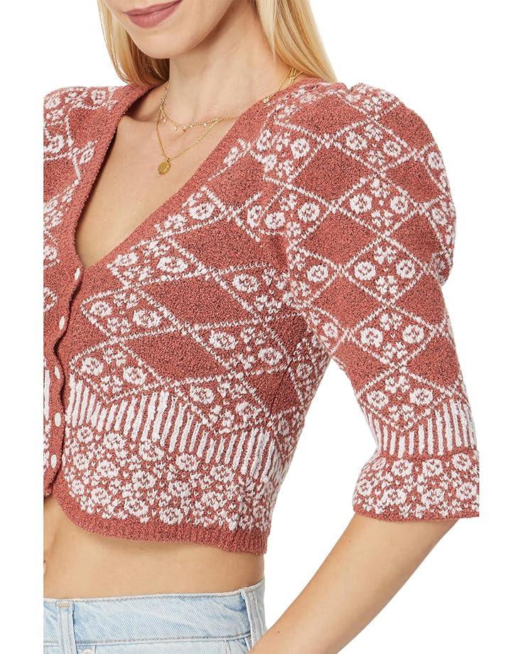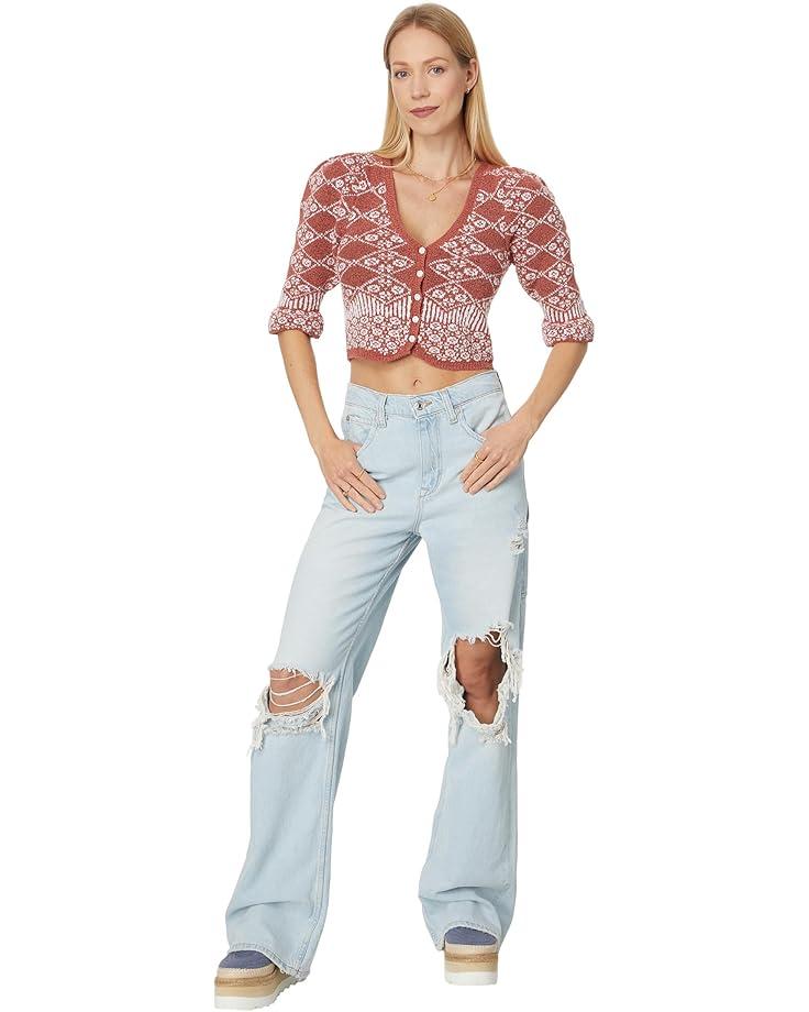 The Free People™ Its On Cardigan is the perfect addition to your wardrobe this season. Made with a patterned knit fabrication, this cardigan features a V-neckline, subtle bell sleeves, and a buttoned front closure. The geometric floral pattern adds a touch of feminine flair to any outfit.