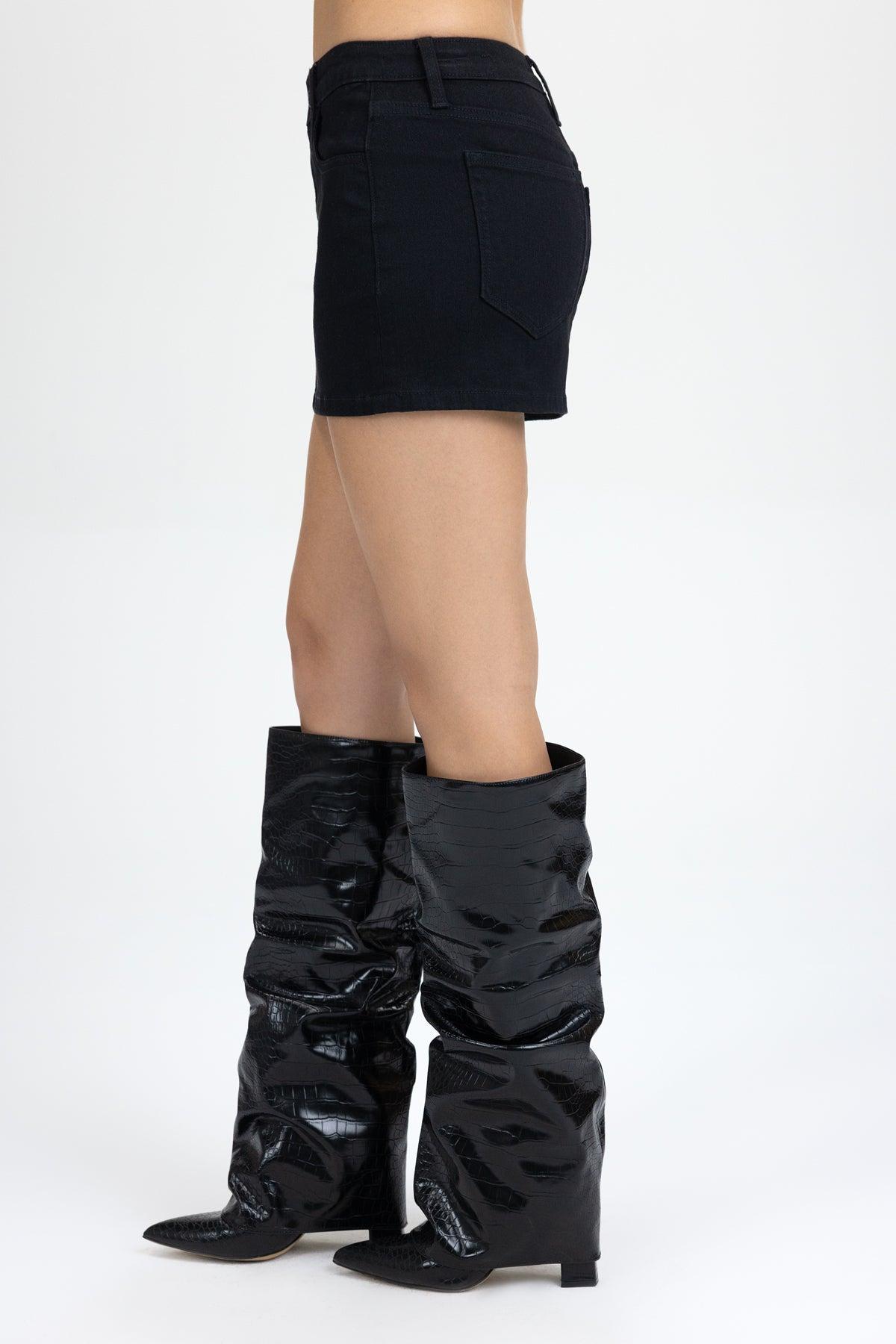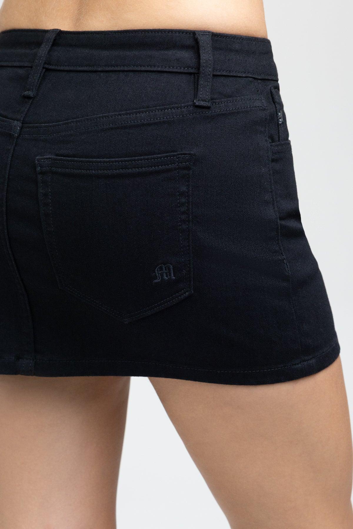 Low-rise mini skirt- Tonal embroidered mini Gothic Miss Me logo- Clean-finish hem- 5-pocket designModel is wearing size: 25Model Measurements:Height: 5'9"Bust: 34BWaist: 25"Hips: 36"Fabric Content: 64% Cotton, 23% Polyester, 10% Viscose, 3% ElastaneCare: Gentle machine wash inside-out with like colors in cold water. Tumble dry low.Style No. L1074N3-B01