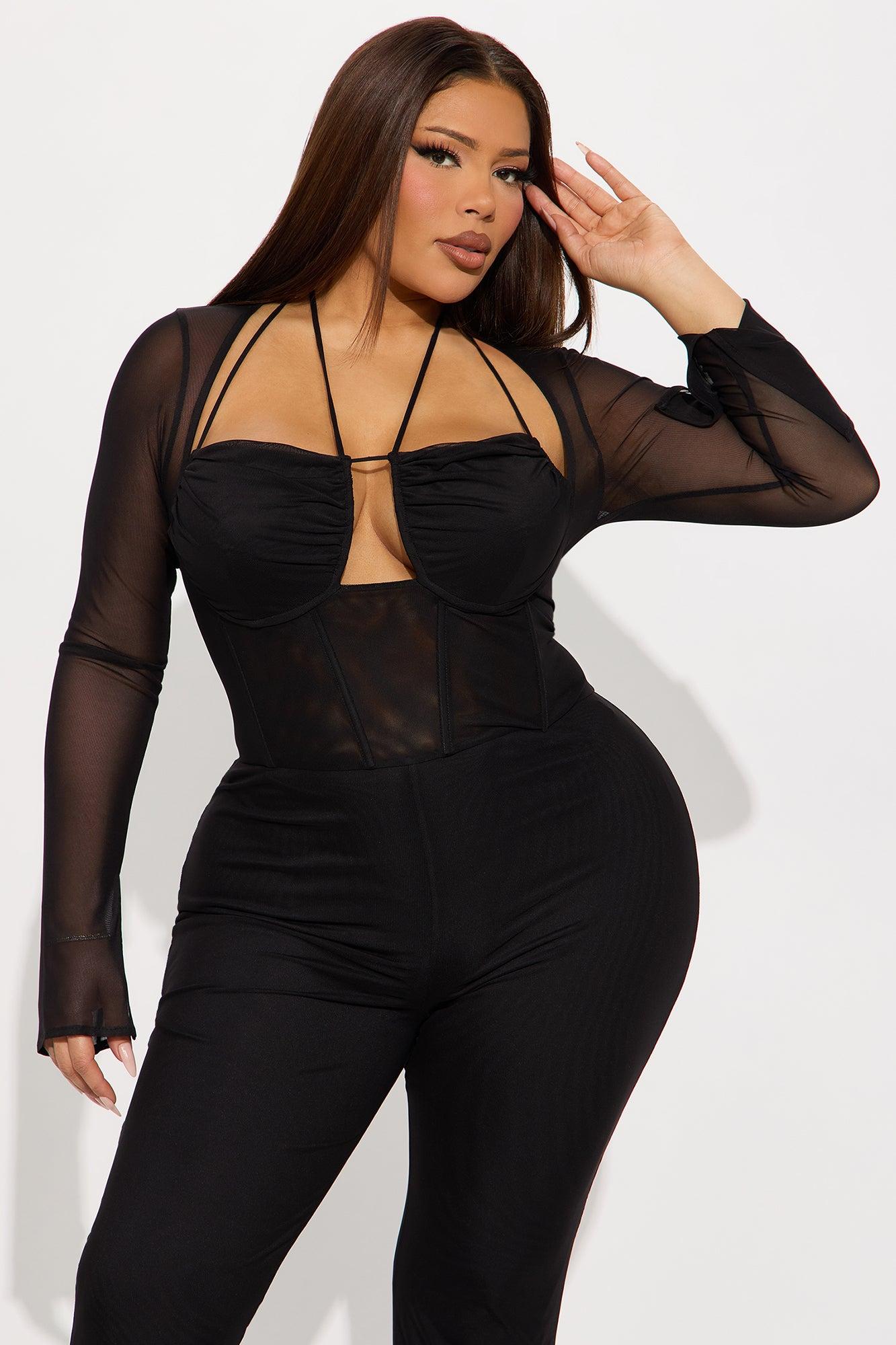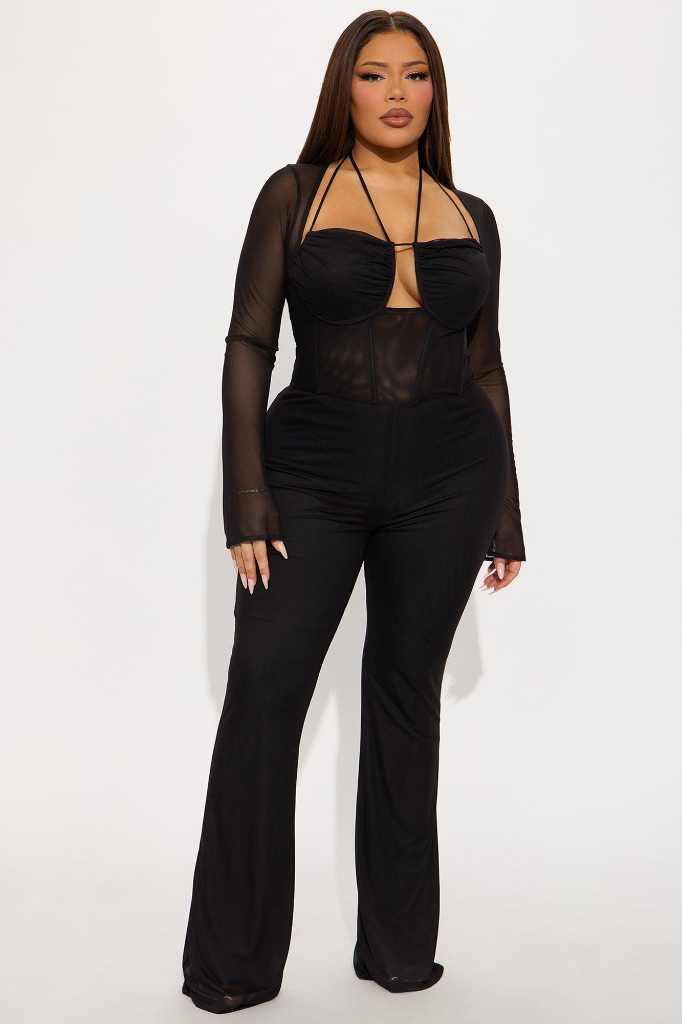 Jazi Sheer Mesh Jumpsuit Set - Black Female